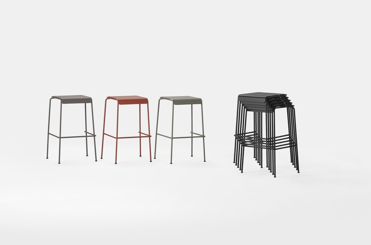 Stapelbarer Metallhocker mit sauberen geometrischen Linien