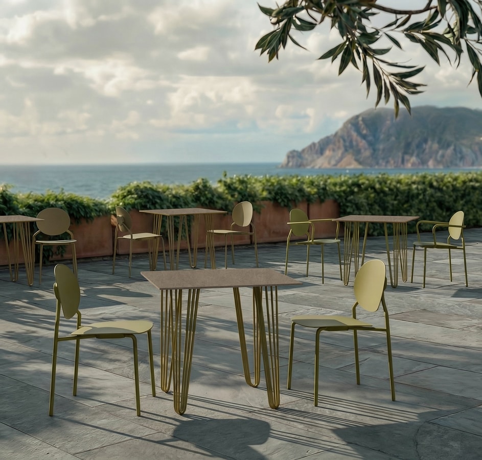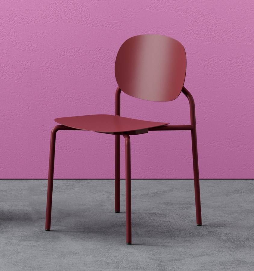 Stuhl aus verzinktem Stahl mit lackierter Oberfläche für den Außenbereich, erhältlich in zehn verschiedenen Standardfarben.