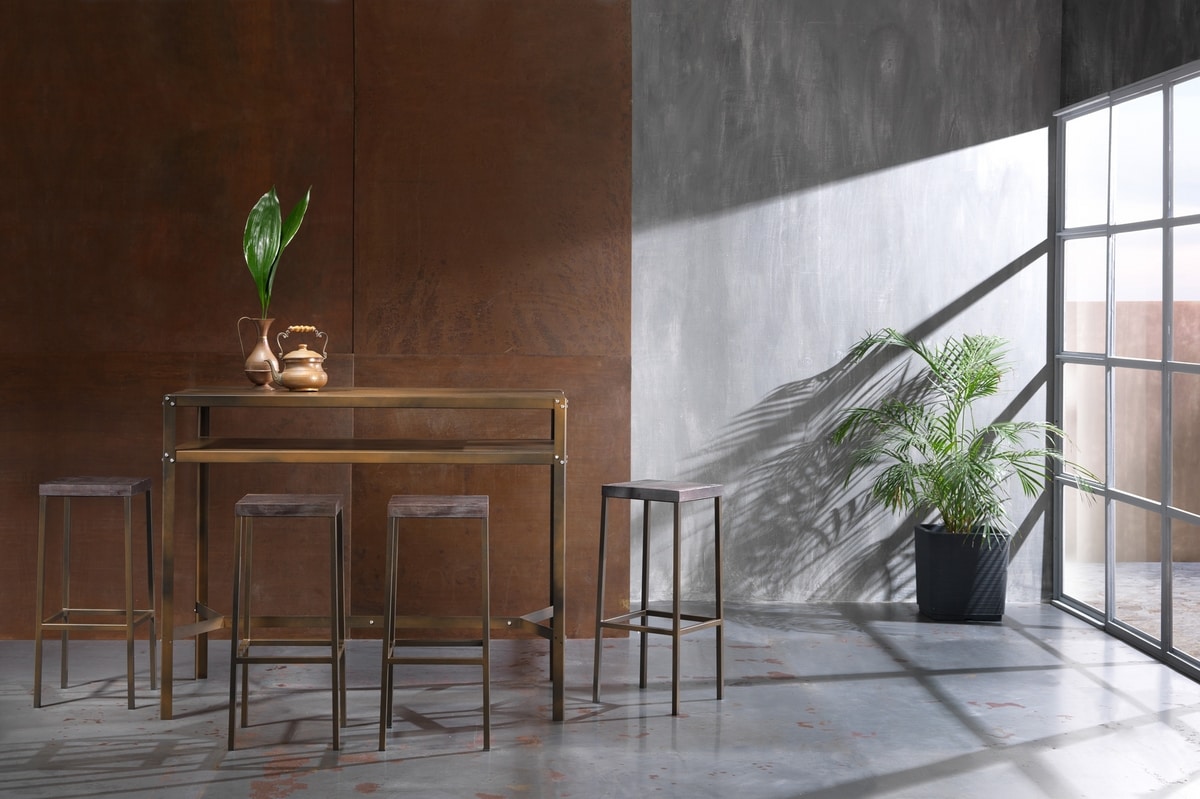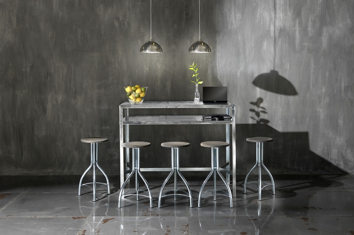 Stahltisch, inspiriert von einem industriellen und modernen Stil