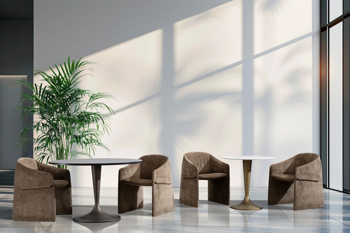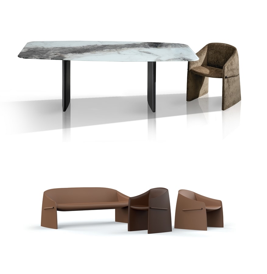 Preise anfordern Ähnliche ProdukteMajorette ist eine Kollektion, die aus einem Sessel, einem Stuhl und einem 3-Sitzer-Sofa besteht, wobei das markante Detail das seitliche Profil aus Kunststoffmaterial ist, das mit Stoff überzogen ist und das Armlehne wie eine grafische Geste durchzieht. Dieses charakteristische Element verleiht dem Sessel Persönlichkeit, indem es die Kontinuität der Polsterung mit einer unerwarteten, aber perfekt ausgewogenen Lösung durchbricht. Die Geometrien dieser Kollektion sind gleichzeitig kompakt, elegant und skulptural. Ihre fließenden Linien und die einladende Form zeichnen ein kontinuierliches Volumen, das vollständig in Stoff oder Leder bezogen ist und darauf ausgelegt ist, sich harmonisch in Vertrags- und Wohnumgebungen zu integrieren.