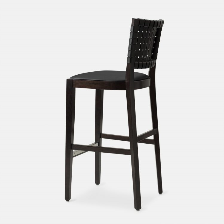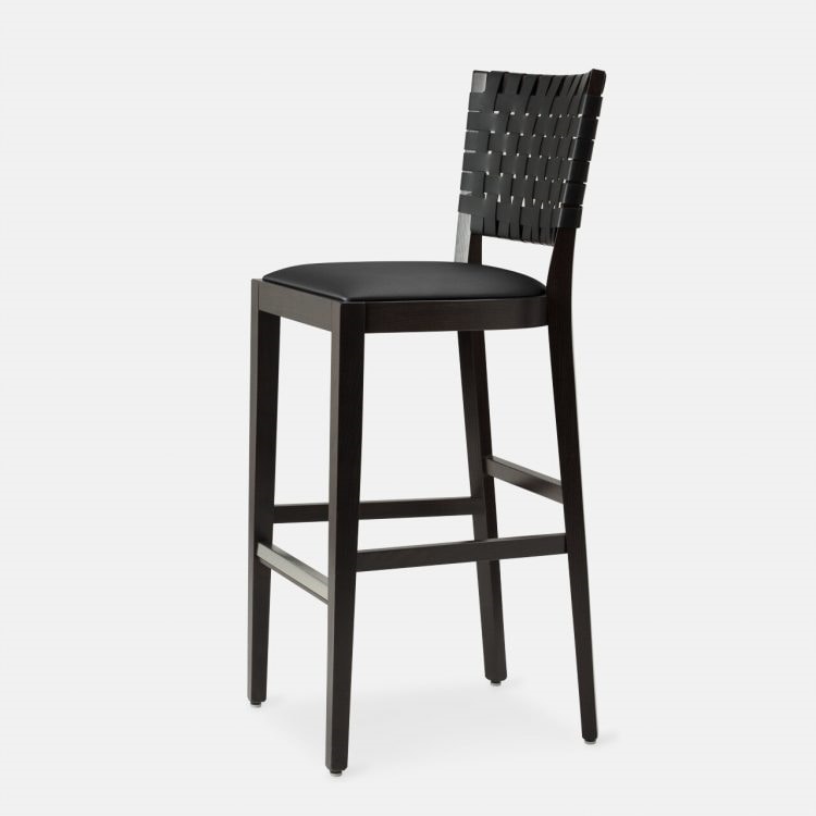 Hocker mit handgeflochtener Lederrückenlehne