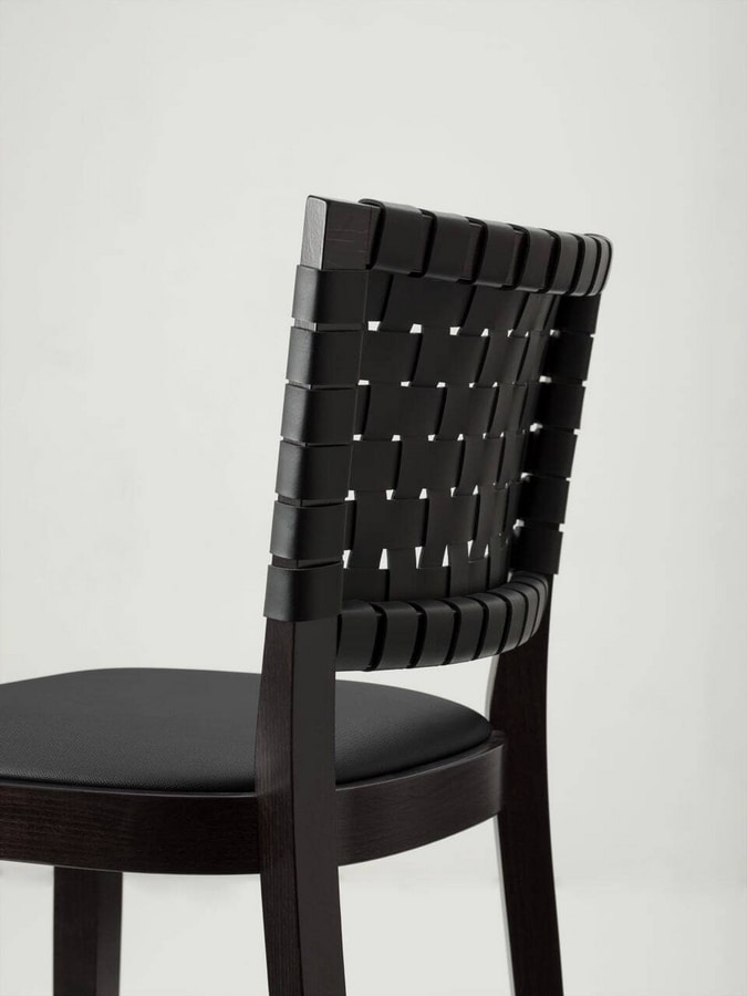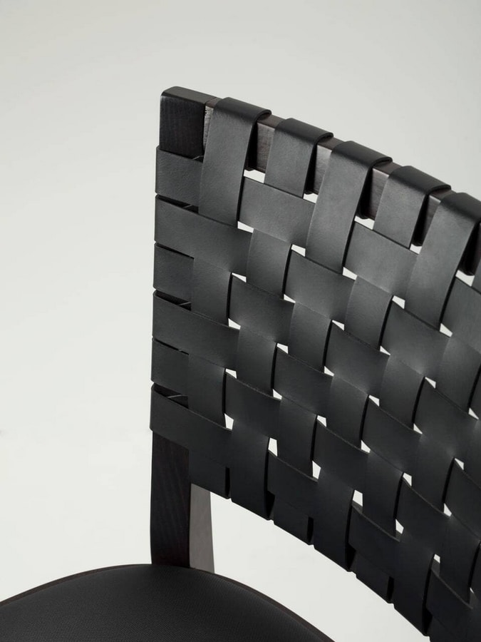 Chicago verfügt über einen Rahmen aus massivem Buchenholz, der in unseren Standardbeizen oder in kundenspezifischen Ausführungen erhältlich ist. Der Sitz aus feuerfestem Schaumstoff ist mit Stoffen unserer Auswahl gepolstert oder mit Stoffen des Kunden individuell gestaltet. Die Rückenlehne ist mit Lederriemen durchflochten, die in verschiedenen Farben erhältlich sind.