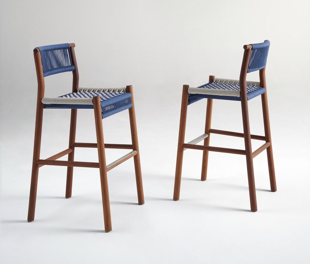 Hocker aus Esche und nautischem Seil