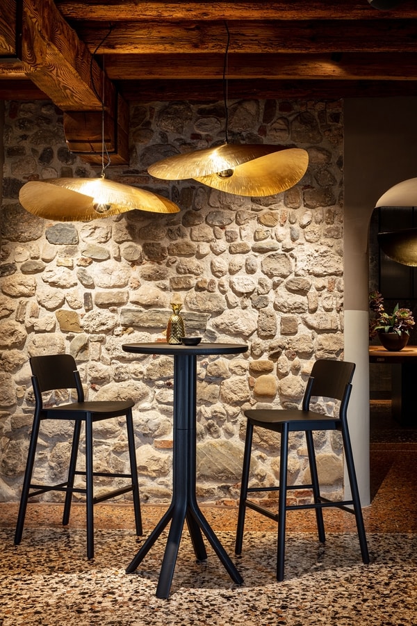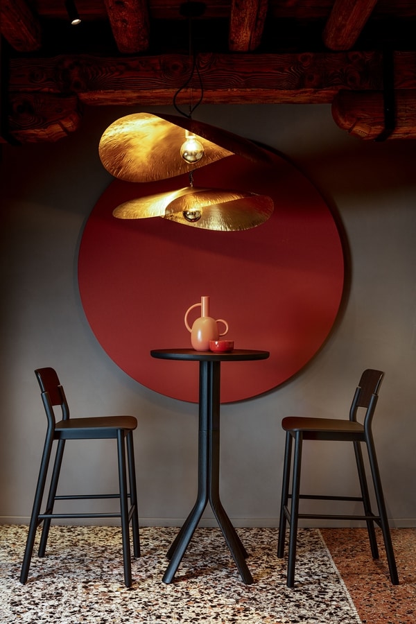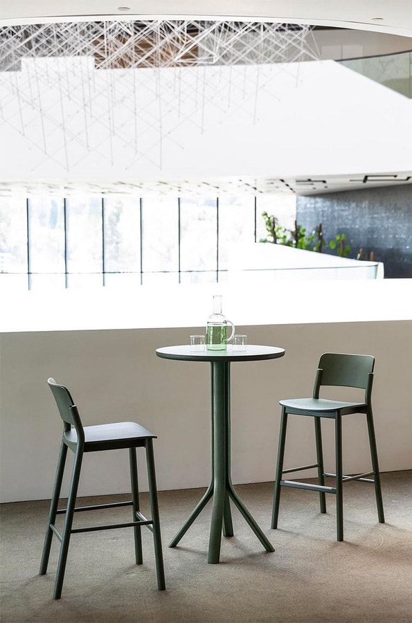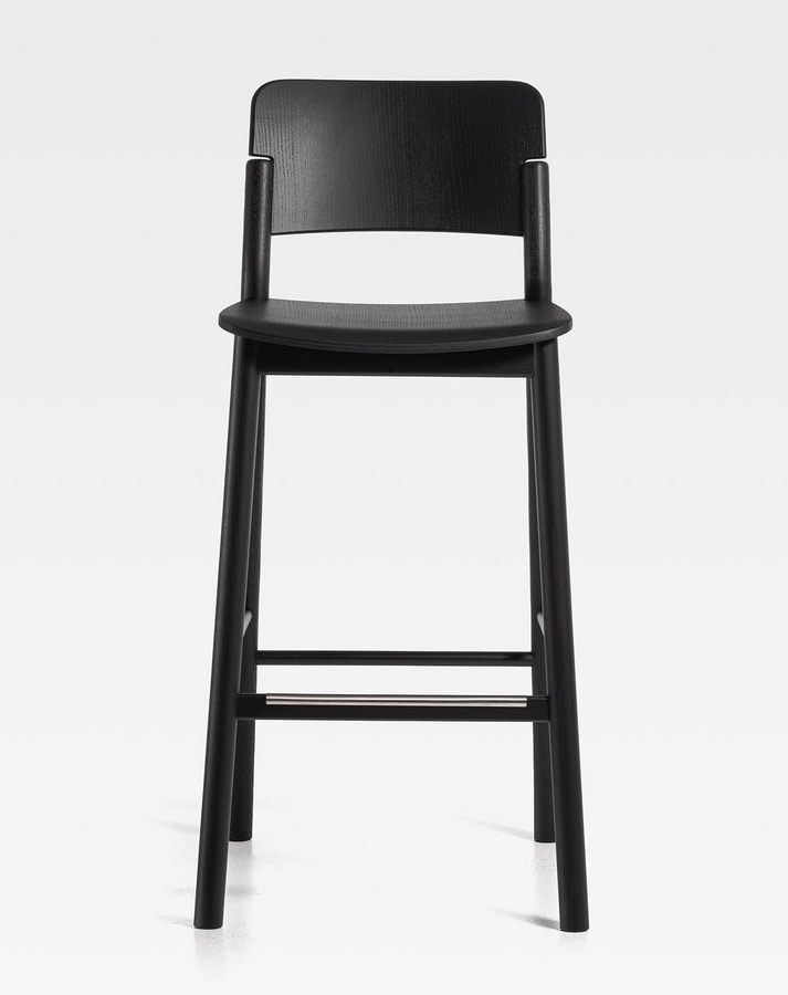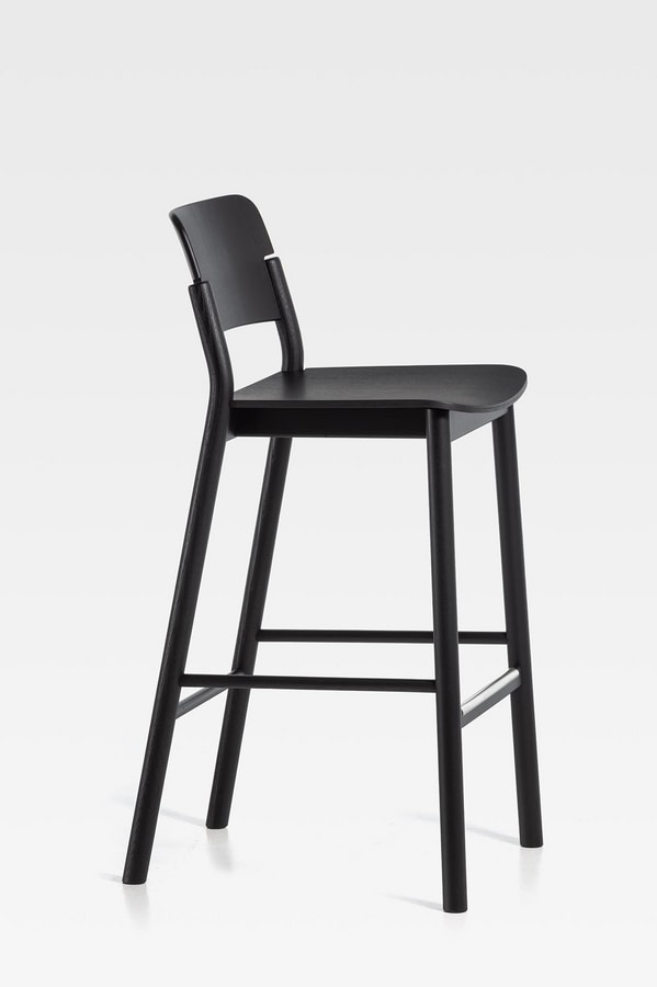 Stuhl und Hocker aus Eschenholz, Sitz und Rückenlehne aus gebogenem Sperrholz. Solide, aber mit geringem Gewicht: Es ist ein sehr bequemer Sitz, auch dank der doppelten Krümmung von Sitz und Rückenlehne. Und für noch mehr Komfort ist es mit einem gepolsterten Sitz erhältlich. Die klaren und essentiellen Linien dieses Holzsitzes werden sowohl durch das natürliche leichte Eschenfinish als auch durch die zahlreichen offenporigen Lackfarben voll zur Geltung gebracht. Es ist ein Holzstuhl, der für den Vertrag entworfen wurde, aber perfekt zu Hause ist, besonders in der Küche.