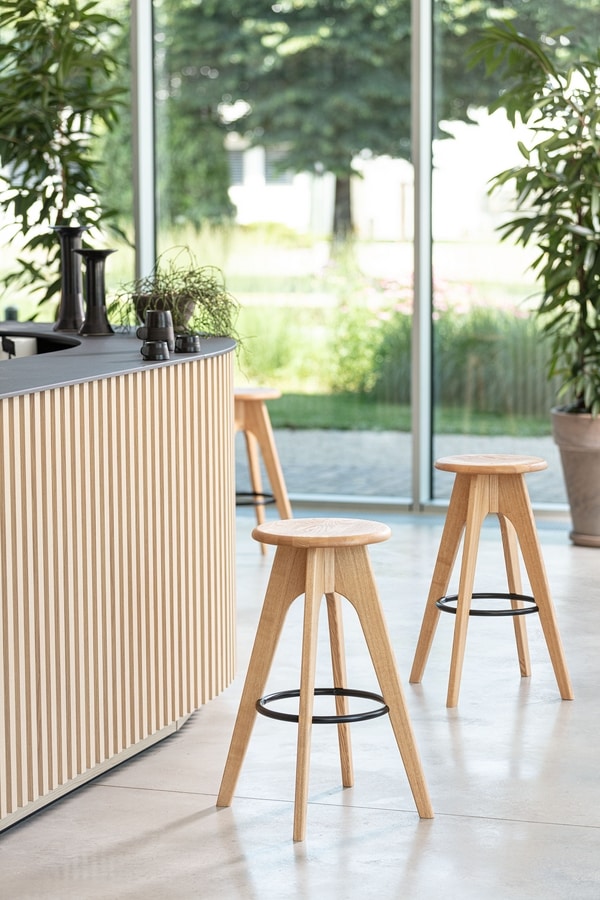Hocker aus Holz mit rundem Sitz