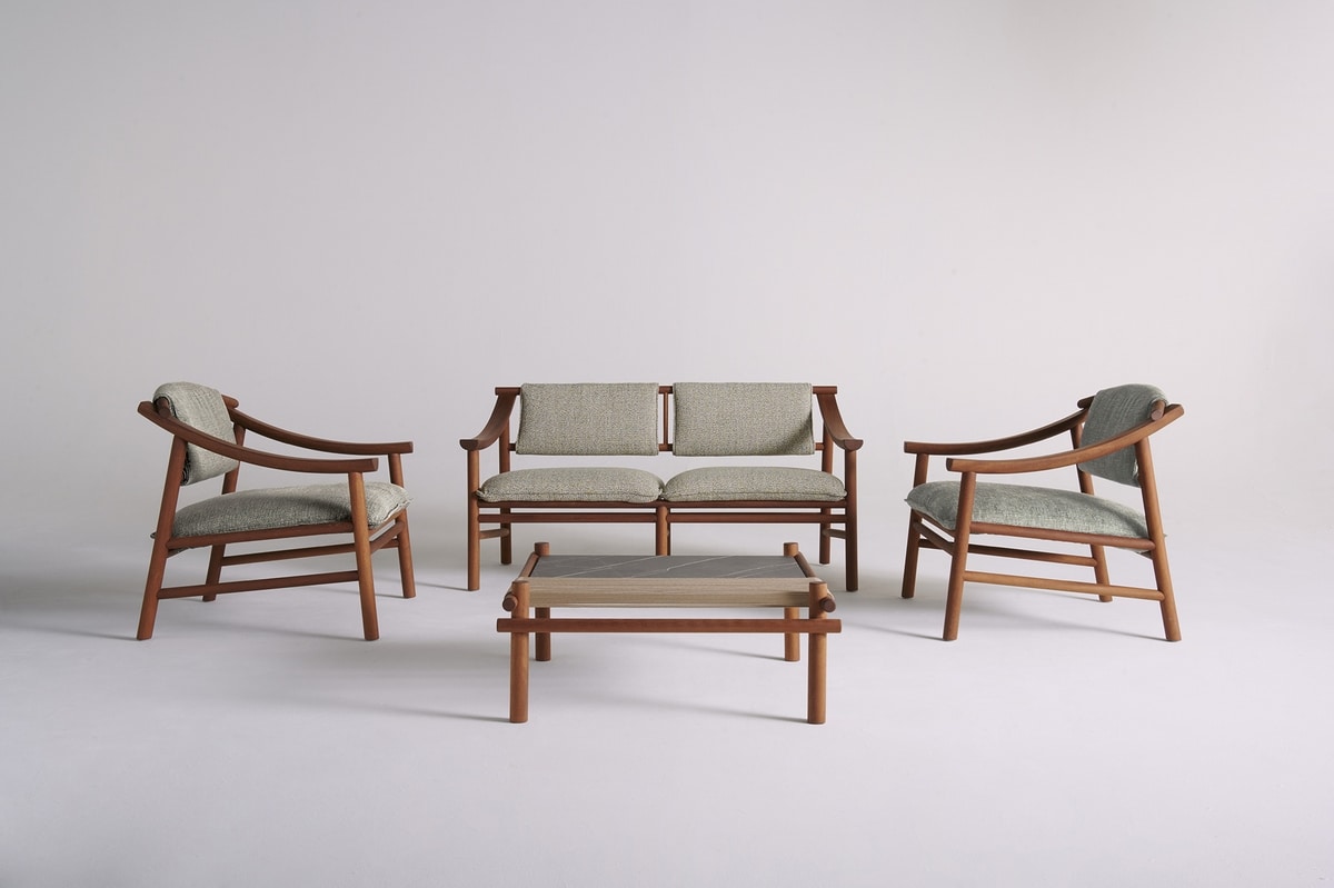 Die Schlichtheit des Eschenholzrahmens wird mit der Weichheit der Stoffe kombiniert, die ausgewählt wurden, um die Raffinesse der Haiku-Silhouette hervorzuheben. Sitz und Rückenlehne bestehen aus Polstern, die direkt mit dem Holzrahmen von Haiku verbunden sind.
