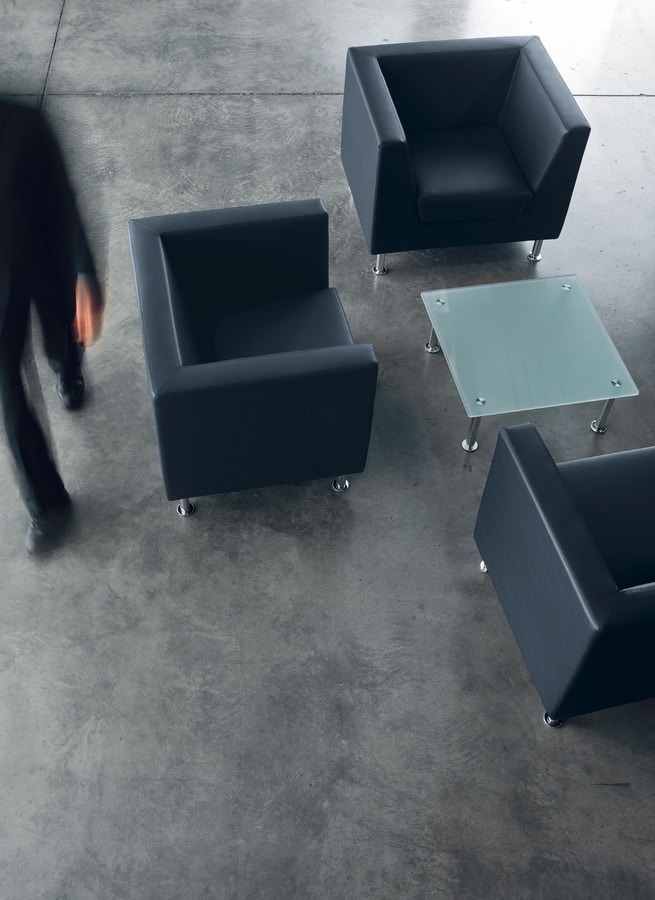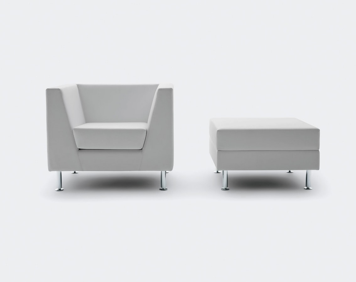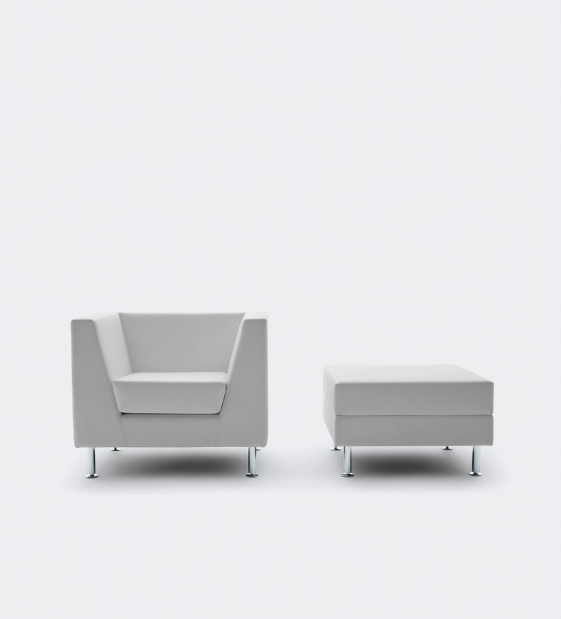 Sessel geeignet für Büro und Zuhause. Naxos wird erneuert und vervollständigt, behält jedoch die Reinheit des Designs bei, die dieses Programm von Wartesitzplätzen seit jeher auszeichnet. Klassische Harmonie der Formen und absoluter Komfort sind die beiden Grundelemente, die den Sessel, die 2- oder 3-Sitzer-Sofas und die Poufs charakterisieren. Das neue Bein mit kreisförmigem Querschnitt macht die allgemeine Linie aktueller und weicher. Die sehr hochwertigen Ausführungen und die natürlichen Proportionen heben den Sessel hervor und bringen auch im Büro die positiven Empfindungen des Wohnens zu Hause.
