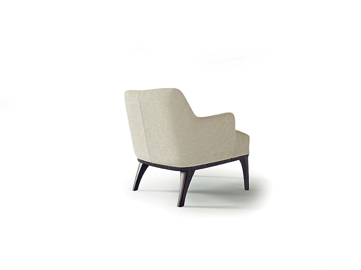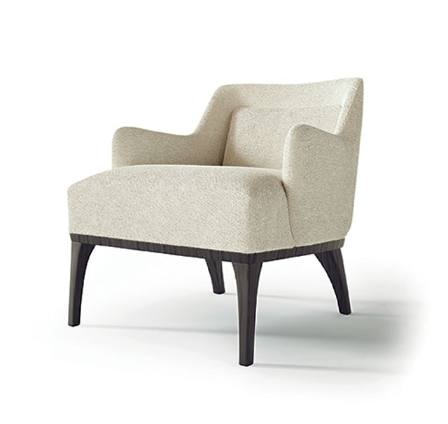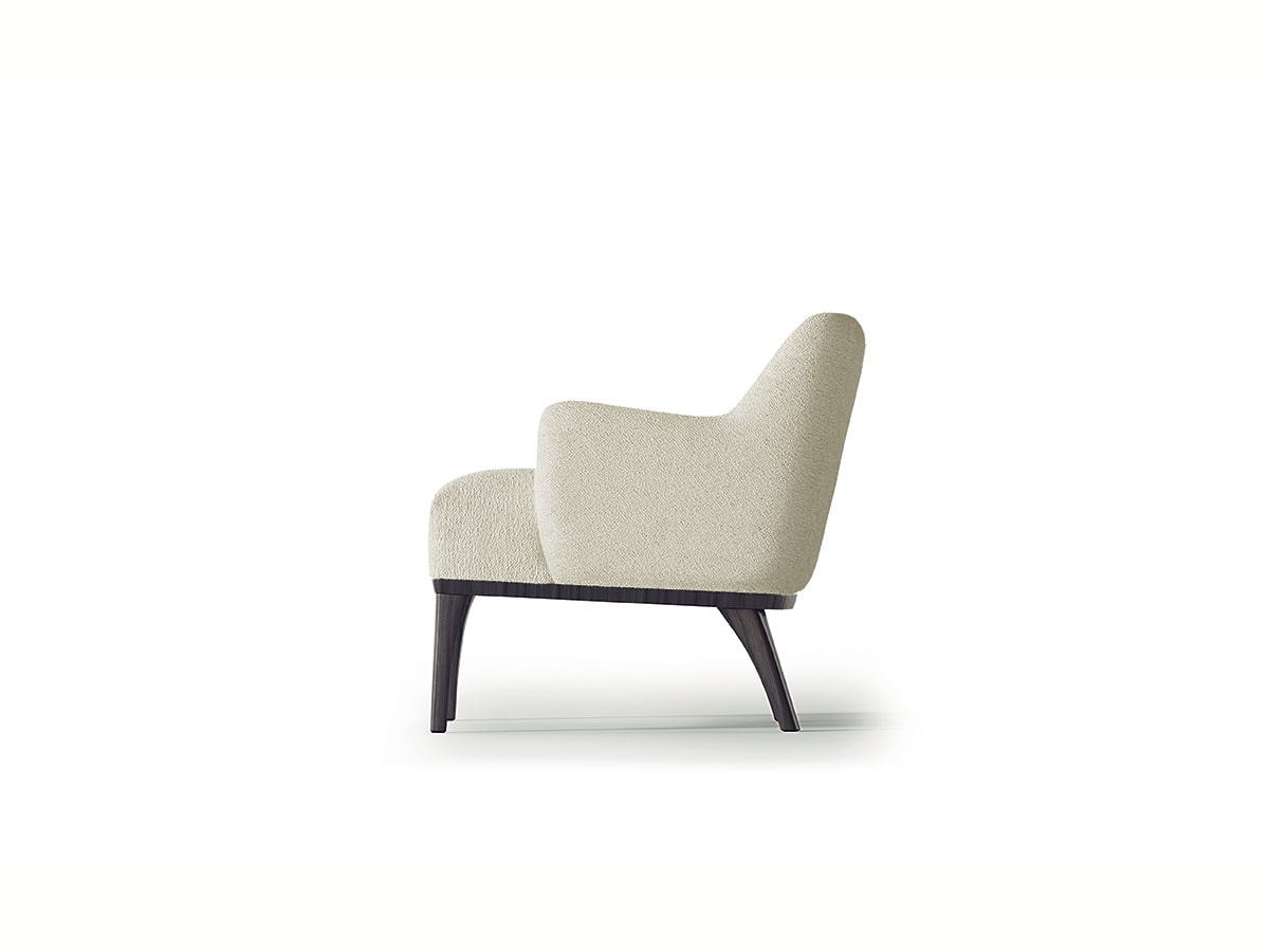 Sessel mit interner Holzstruktur, Polyurethan-Polsterung in verschiedenen Dichten und Massivholzfüßen in dunkler Tay-Tonalität.