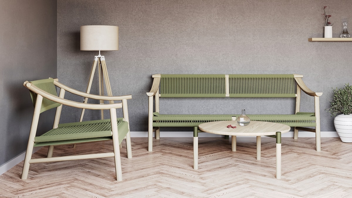 Holzsofa mit nautischem Seil