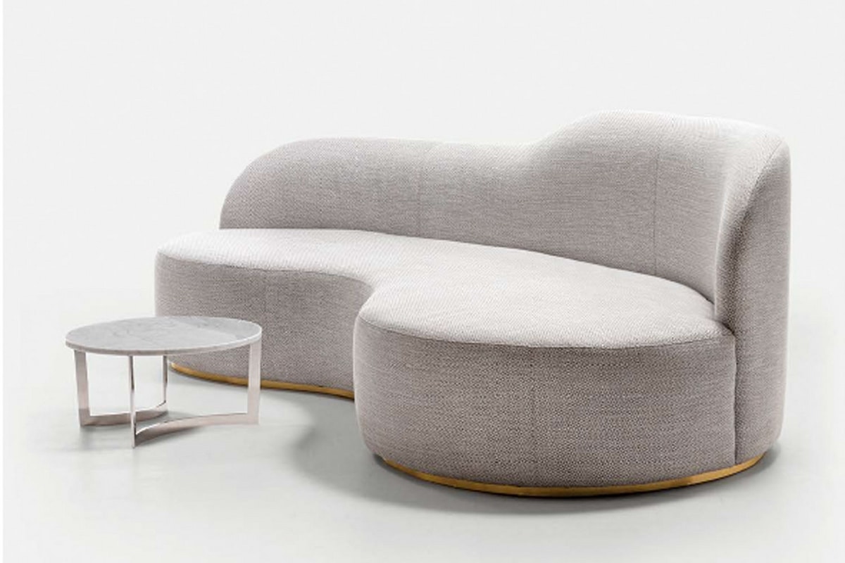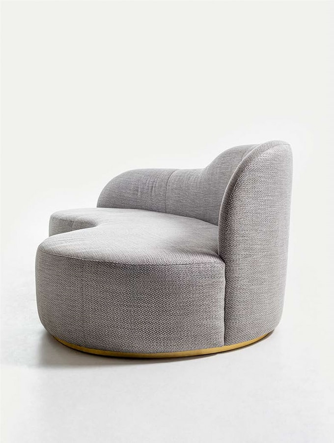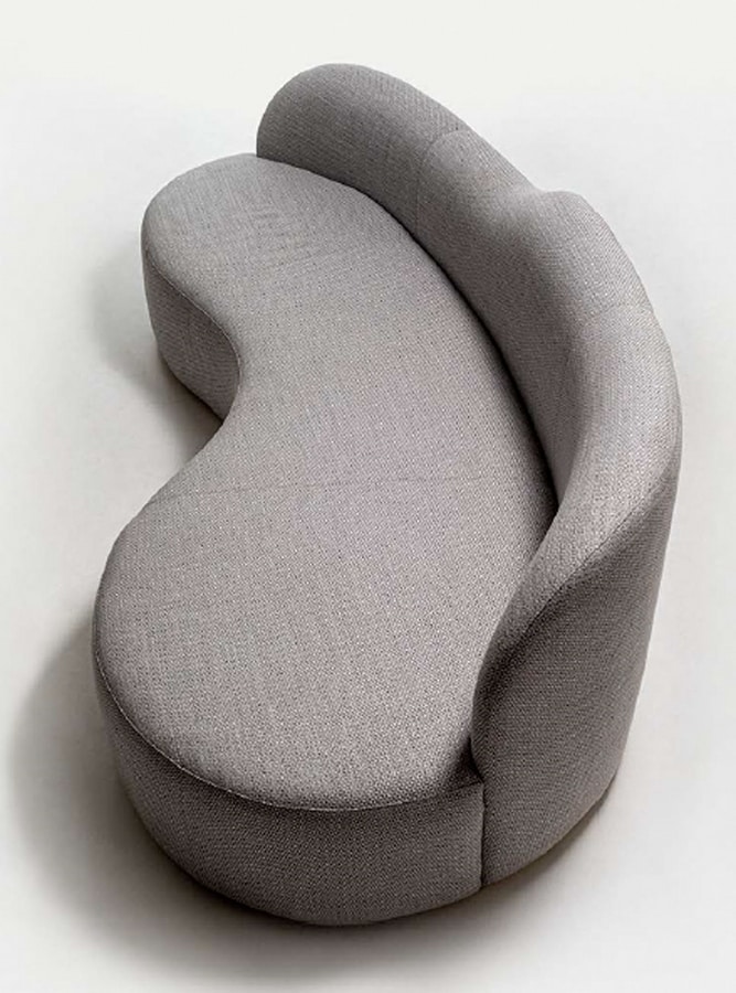 Eleganz, Komfort und Dynamik, drei Eigenschaften, die in diesem Sofa zusammenkommen. Die abgerundete Form verleiht dem Sitz ein einzigartiges kugelähnliches und dennoch einfaches Design sowie zusätzlichen Komfort und Halt.