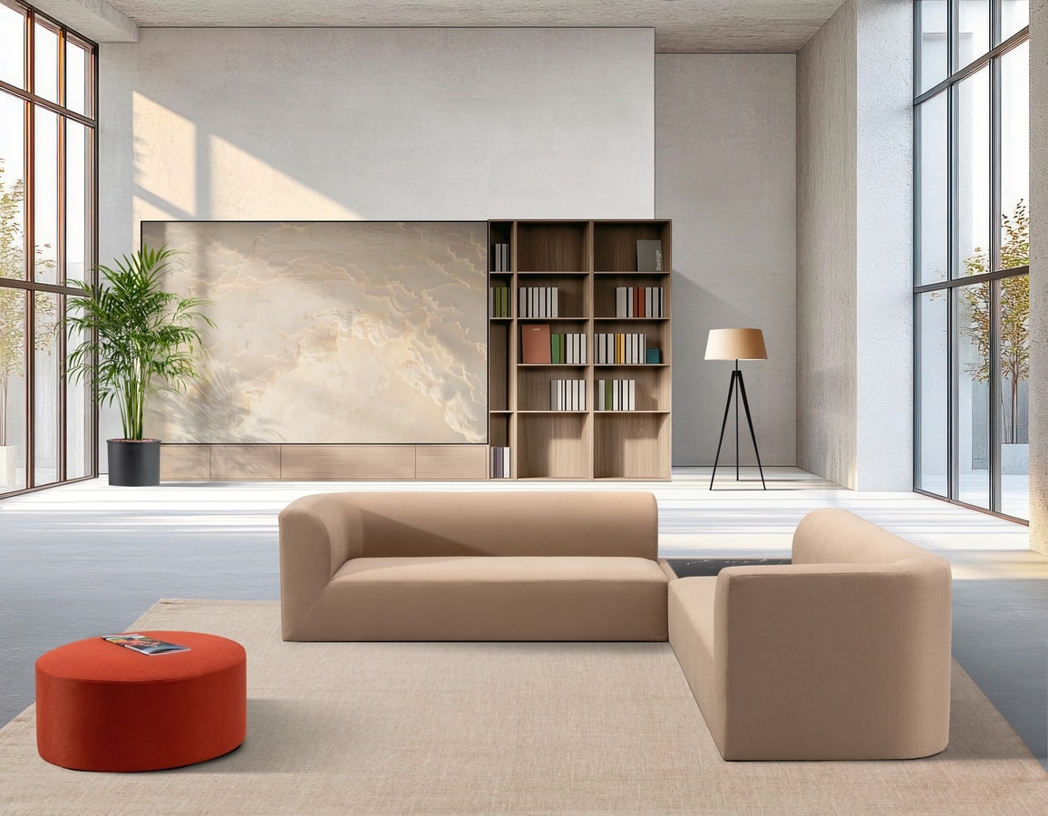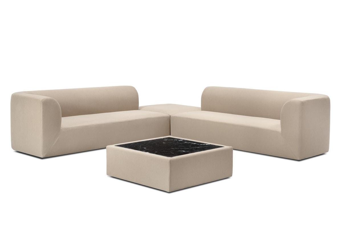 Das modulare System Zafar wurde entwickelt, um Innenräume, die der Geselligkeit und dem Warten gewidmet sind, neu zu definieren. Mit seinen großzügigen Abmessungen und der breiten, bequemen Sitzfläche bietet es ein absolutes Entspannungserlebnis und verbindet Ergonomie mit modernem Design. Seine modulare Struktur ermöglicht unendliche Konfigurationen, einschließlich Marmorplatten, und verwandelt jeden Raum in eine elegante und raffinierte Umgebung.