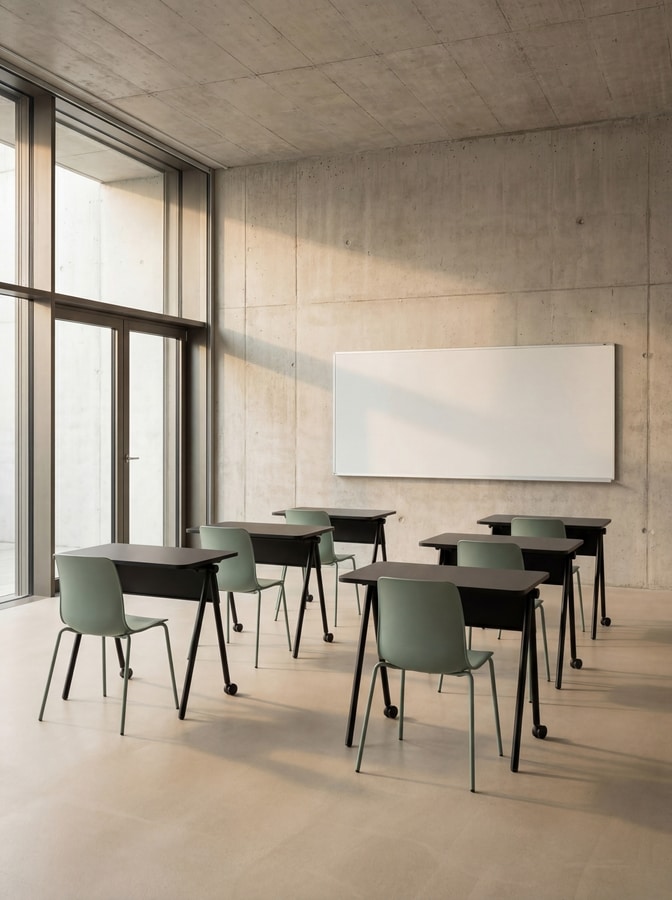 Ryo wurde für Schulen, Universitäten, Bibliotheken, Schulungsräume und Besprechungsräume entwickelt. Es fördert kollaborative, vielseitige Umgebungen, die immer bereit sind, sich zu verändern, und verwandelt den Raum in ein aktives Werkzeug zum Lernen und Teilen.