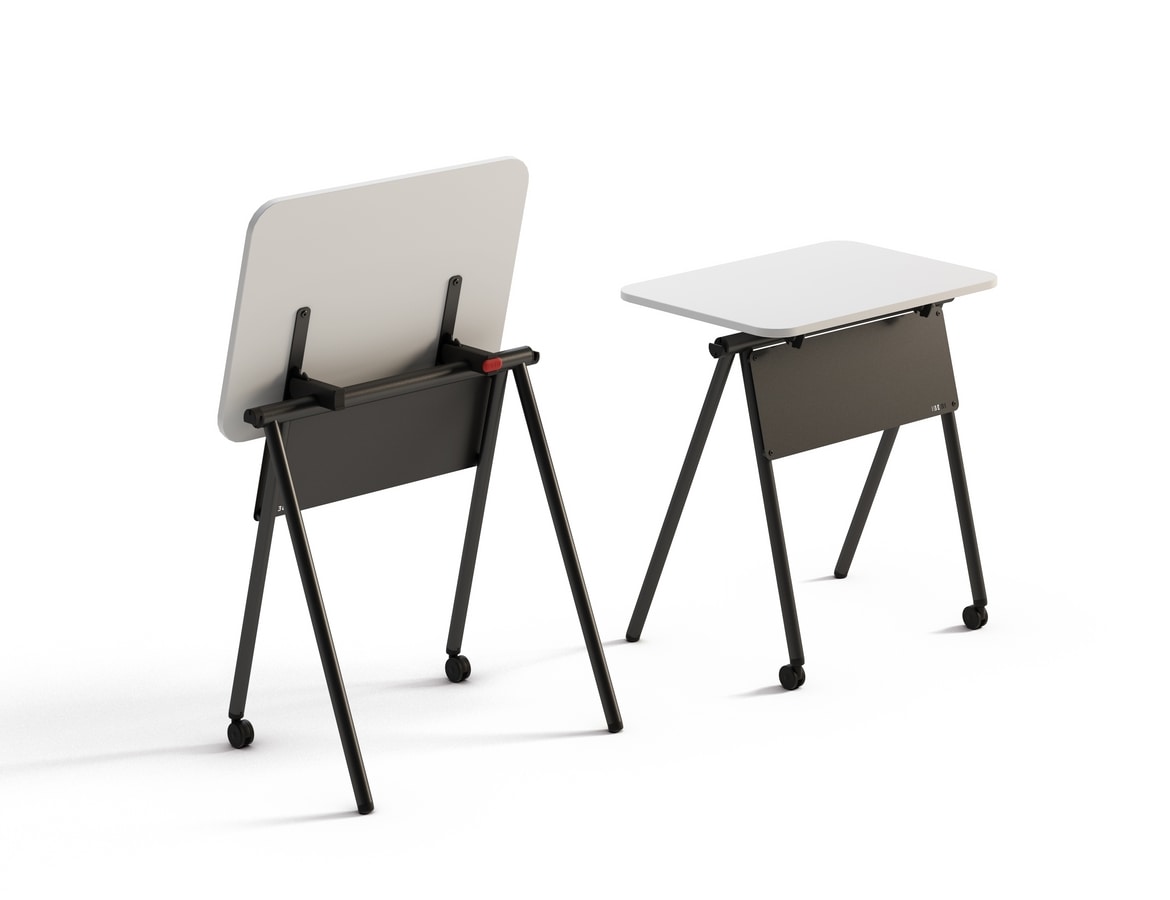 Leicht, handlich und multifunktional. Die klappbare Tischplatte ermöglicht ein schnelles und intuitives Schließen, erleichtert das Verstauen und befreit den Raum mit einer einfachen Geste. Frontal stapelbar und leicht kombinierbar, ermöglicht Ryo die Erstellung von linearen Konfigurationen oder weiter gefassten Kompositionen, die sich präzise an verschiedene operative Anforderungen anpassen. Die Räder mit Blockiersystem sorgen für flüssige Bewegungen und schnelle Wandlungen, während das Kupplungssystem es ermöglicht, die Tische stabil und ordentlich zu verbinden und auszurichten.