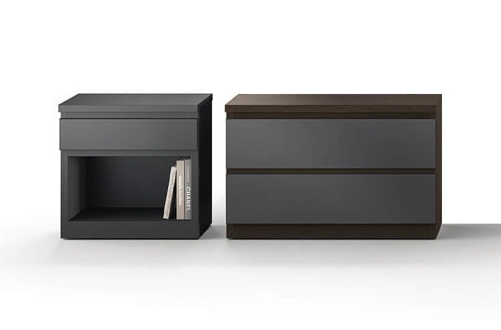 Base zeichnet sich durch die untere Öffnung mit der in das Massivholz gegrabenen Nut aus. Zwischen den Schubladen bleibt ausreichend Platz von cm 2. Die Oberseite hat eine Dicke von 2,5 cm. Das Basissystem umfasst Nachttische, Kommoden und Schränke mit großer Gestaltungsfreiheit. Es gibt auch Doppelelemente und Modelle mit Tür oder Regalen. Die aus Massivholzkomponenten gefertigten Strukturen, Platten und Frontschubladen sind in allen Elli-Ausführungen erhältlich. Es besteht die Möglichkeit, Schubladen mit in den Rahmen eingesetztem Glas oder Paneel zu verwenden. Es besteht die Möglichkeit, eine verdeckte magnetische Geheimschublade einzubauen. Die Schubladen sind mit Tecnoleather-Boden und internem Staufach individuell anpassbar. Anti-Stoß-gebremste Schubladeneinheiten, Selbstmontagesystem mit Schnellverschluss, Höhenverstellung. Extreme Maßfreiheit: 6 Höhen, 5 Breiten, 2 Standardtiefen, individuell.