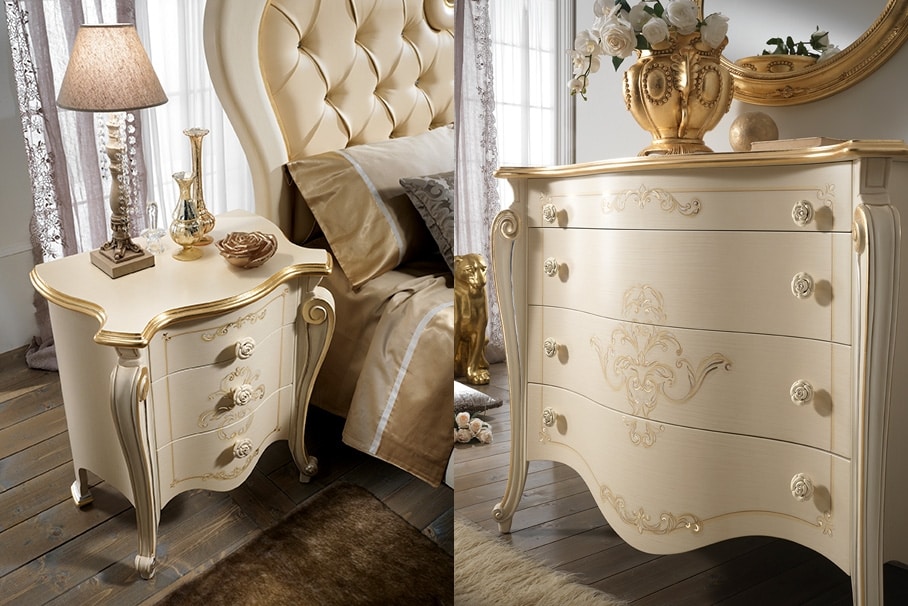 Kommode und Nachttische mit romantischen und weichen Linien