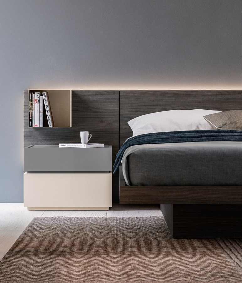 Nachttisch in Materic matt lackiert Old Rose und Cloud Grey.