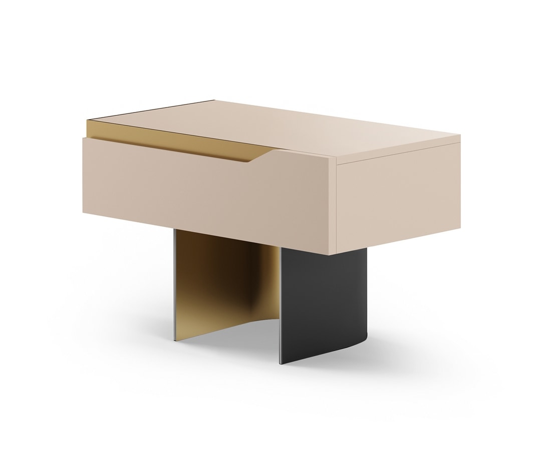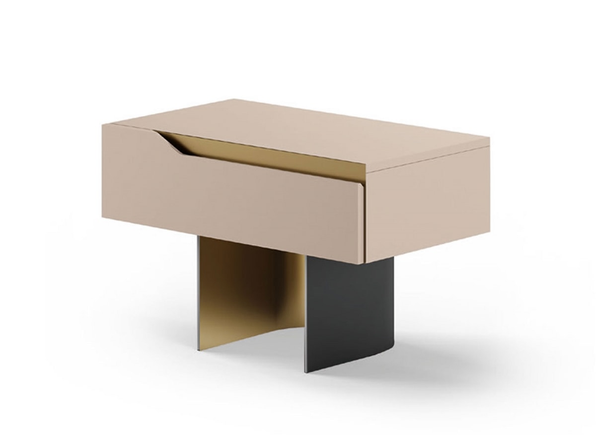 Moderner Nachttisch mit gebogenem Metallfuß