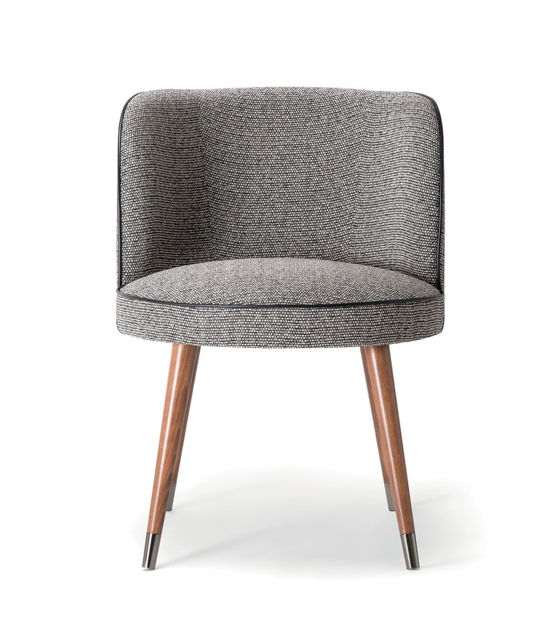 Renommierte italienische Qualität drückt sich in einem internationalen, modernen Design aus, das aus kurvigen Linien und weichen Situationen besteht. Als Teil der erweiterten Kollektion von Seitenstühlen, Liegestühlen und Barhockern kann der Candy-Stuhl leicht spezifiziert werden, um das Design Ihres Interieurs mit einer Auswahl an Polstern und Holzbeizen zu erfüllen. Für den perfekten Abschluss fügen Sie optionale Metall-Slipper-Kappen für das ultimative elegante Design hinzu.