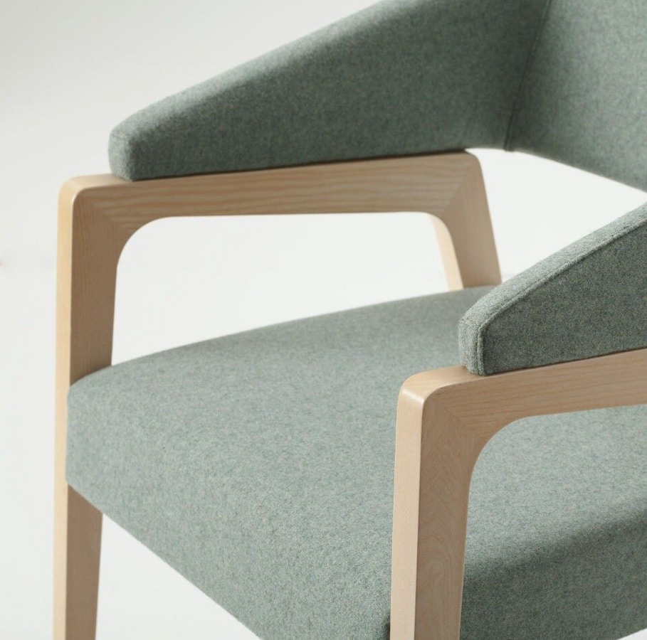Musa verfügt über einen Rahmen aus massivem Eschenholz, der in unseren Standardbeizen oder in kundenspezifischen Ausführungen erhältlich ist. Sitz und Rückenlehne aus feuerbeständigem Schaumstoff sind mit Stoffen unserer Auswahl gepolstert oder mit Stoffen des Kunden individuell gestaltet.
