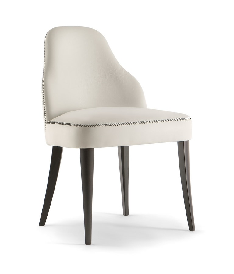 Der vollständig gepolsterte Chicago-Seitenstuhl eignet sich perfekt für schicke und anspruchsvolle Umgebungen und zeichnet sich durch weiche Linien, Komfort und Design aus. Der handgefertigte Absteppstich, der sich vom Farbton der Polsterung abhebt, erzeugt eine auffällige Linie entlang der Konturen. Die Massivholzbeine bereichern den bequemen und stilvollen Sitz. Dank der großen Auswahl an hochwertigen Stoffen und Holzbeizen ist dieses Produkt in hohem Maße anpassbar.