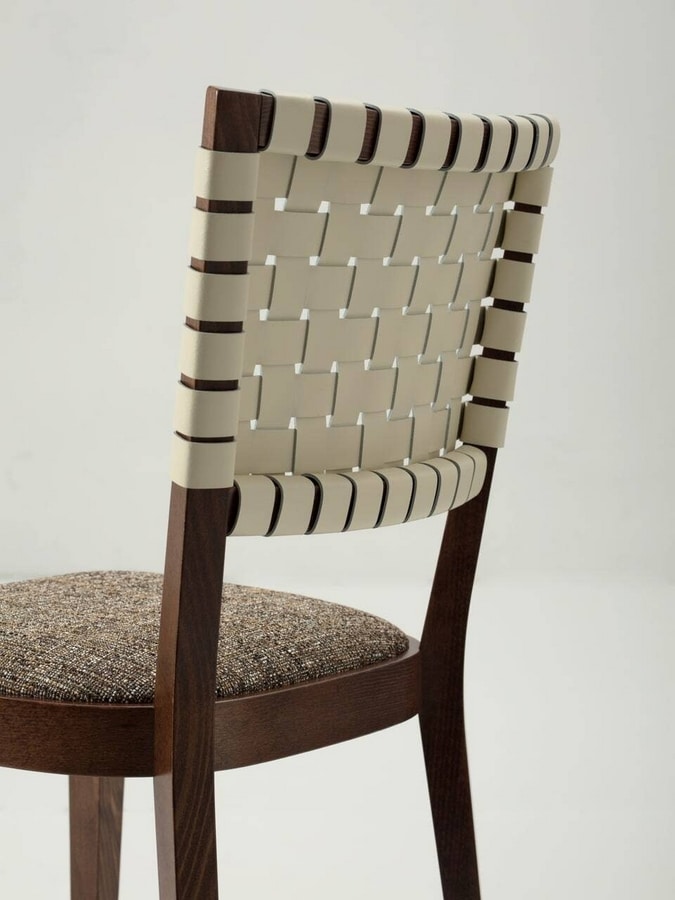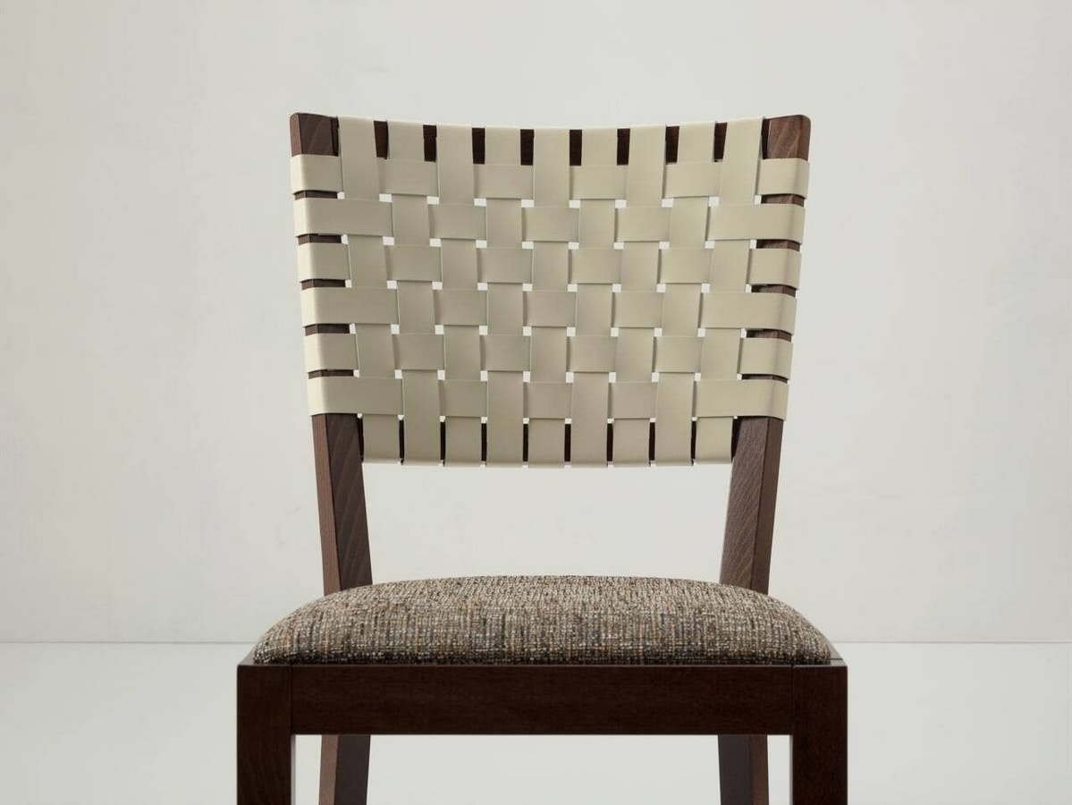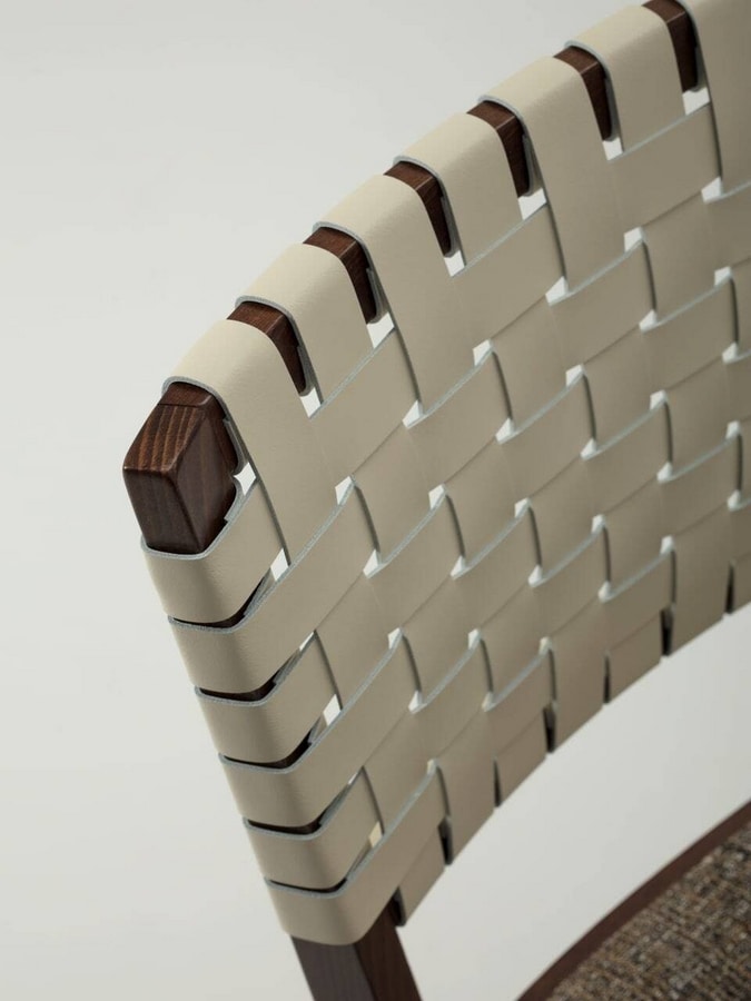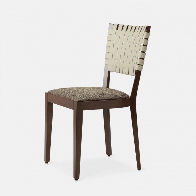 Chicago verfügt über einen Rahmen aus massivem Buchenholz, der in unseren Standardbeizen oder in kundenspezifischen Ausführungen erhältlich ist. Der Sitz aus feuerfestem Schaumstoff ist mit Stoffen unserer Auswahl gepolstert oder mit Stoffen des Kunden individuell gestaltet. Die Rückenlehne ist mit Lederriemen durchflochten, die in verschiedenen Farben erhältlich sind.
