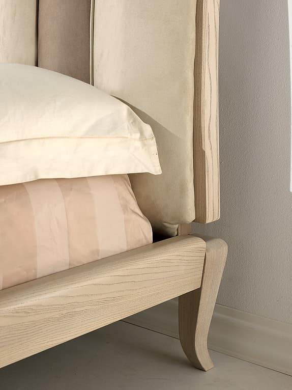 Aschebett mit gepolstertem Kopfteil, handgefertigt
