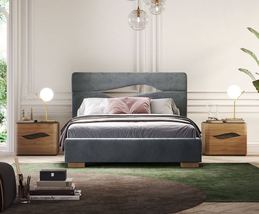 Polsterbett, mit dekorativem Loch im Kopfteil