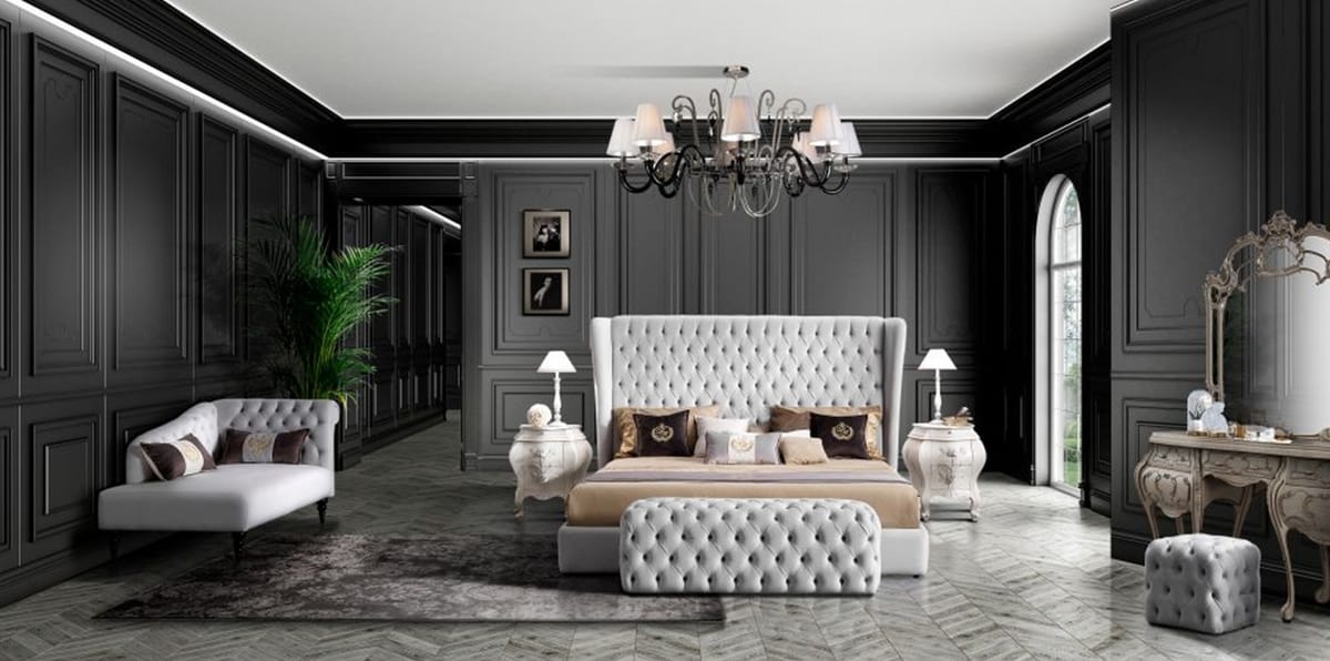 Klassisches Bett mit großem Tuftingkopfteil