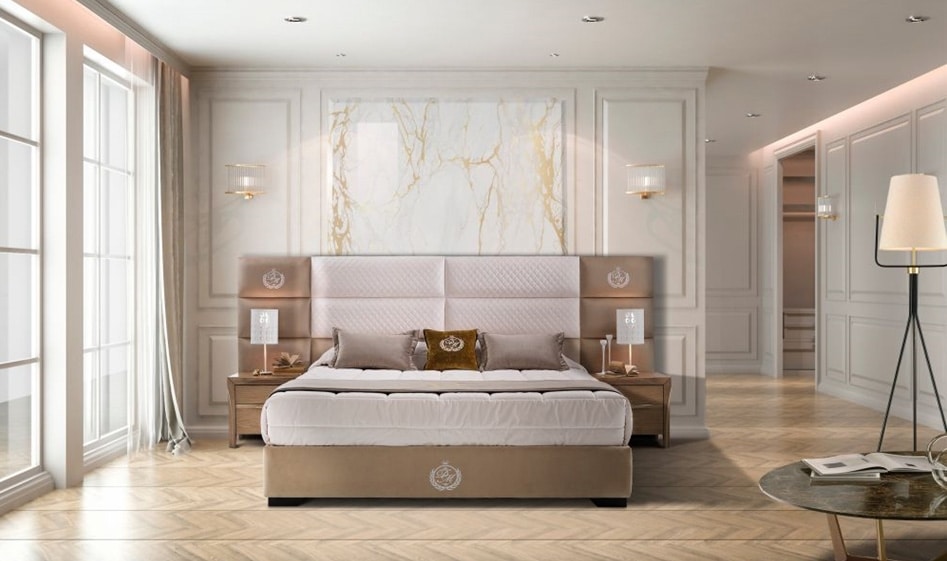 Bett mit einem zeitgenössischen Design, passend für jede Umgebung, von Wohngebieten bis zu Hotels.