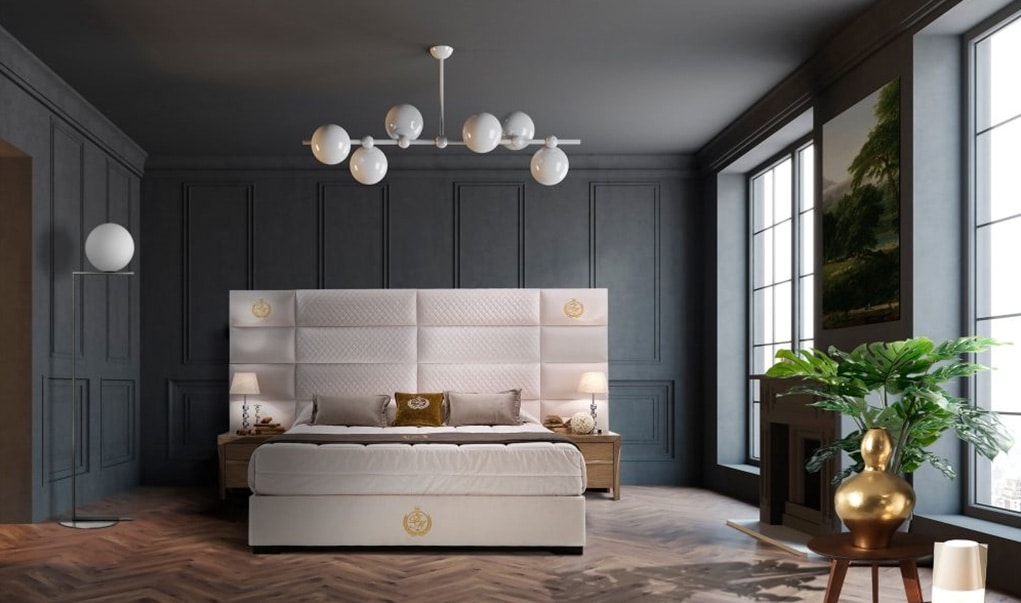 Die zentralen Paneele des Kopfteils sind gesteppt und dies macht dieses Bett einzigartig.