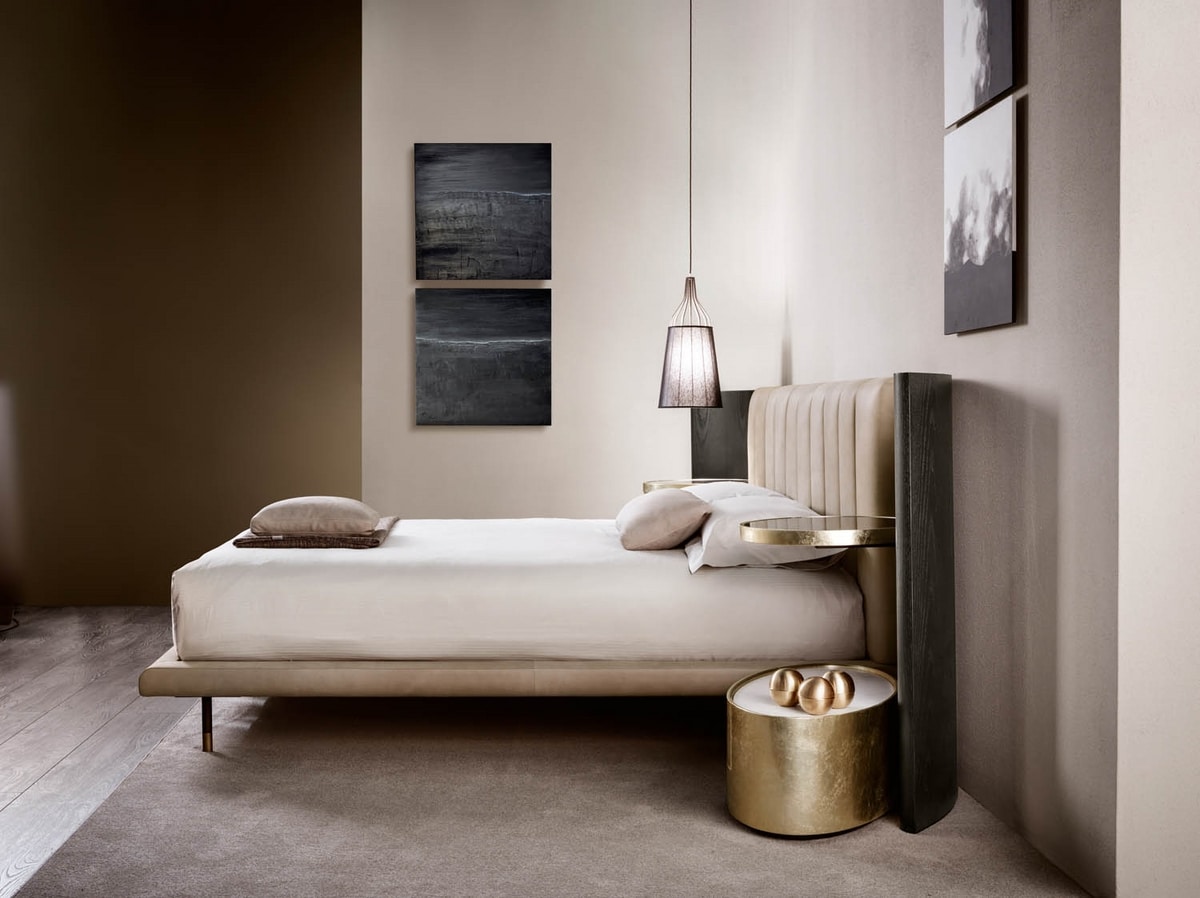 Preise anfordern Ähnliche ProdukteDie innere Struktur besteht aus Sperrholz und massivem Pappel- und Buchenholz mit Details aus denselben Materialien. Die Strukturabdeckung besteht aus nicht verformbarem expandiertem Polyurethan und synthetischem Material. Das breite Kopfteil besteht aus Eschenholzfurnier oder italienischem Walnussholz und schmiegt sich in einer idealen, beruhigenden Umarmung an die Seiten. Die Abdeckung des Kopfteils und des Bettrahmens kann mit Stoff, Leder oder Öko-Leder angepasst werden. Es gibt zwei Regale, ein festes und ein mobiles, die sich drehen lassen, um eine effektivere Nutzung zu gewährleisten. Das Mirage-Bett mit seinem Design verleiht Ihrem Schlafzimmer einen einzigartigen Charakter.