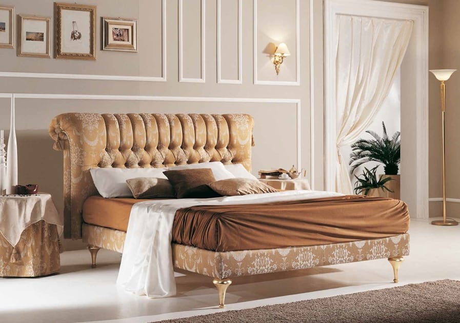 Bett mit Capitonné-Kopfteil. Erhältlich in Doppel, Französisch und Einzelgrößen.