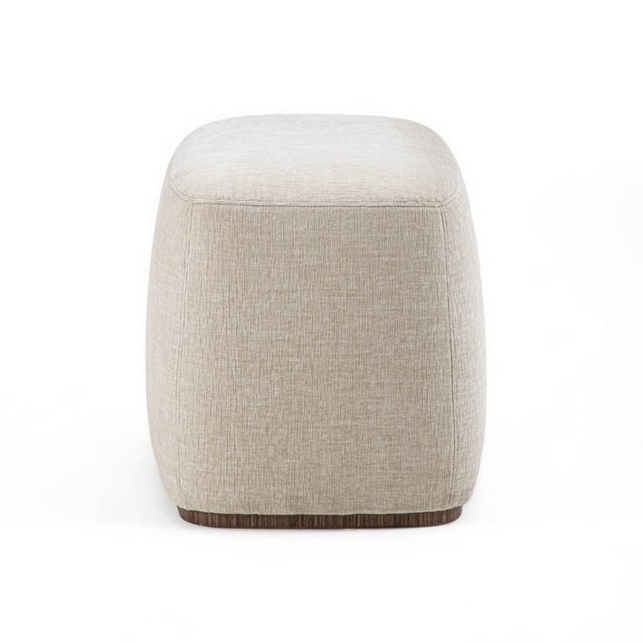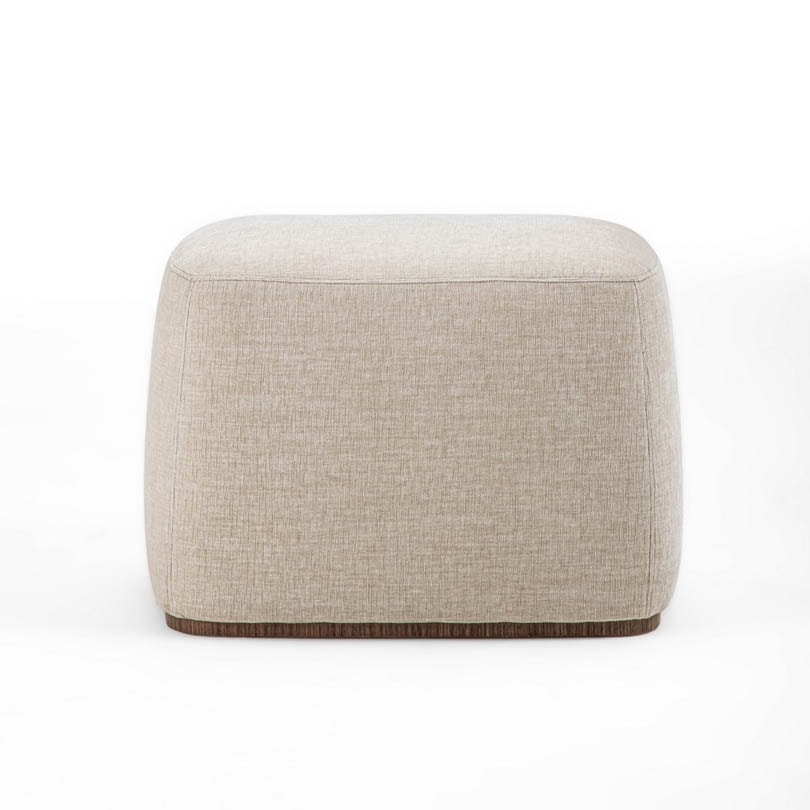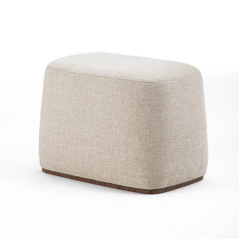 Pouf mit einer weichen und abgerundeten Linie, der Sockel ist aus edlem Canaletta-Walnussholz gefertigt, was ihm Robustheit und Eleganz verleiht.