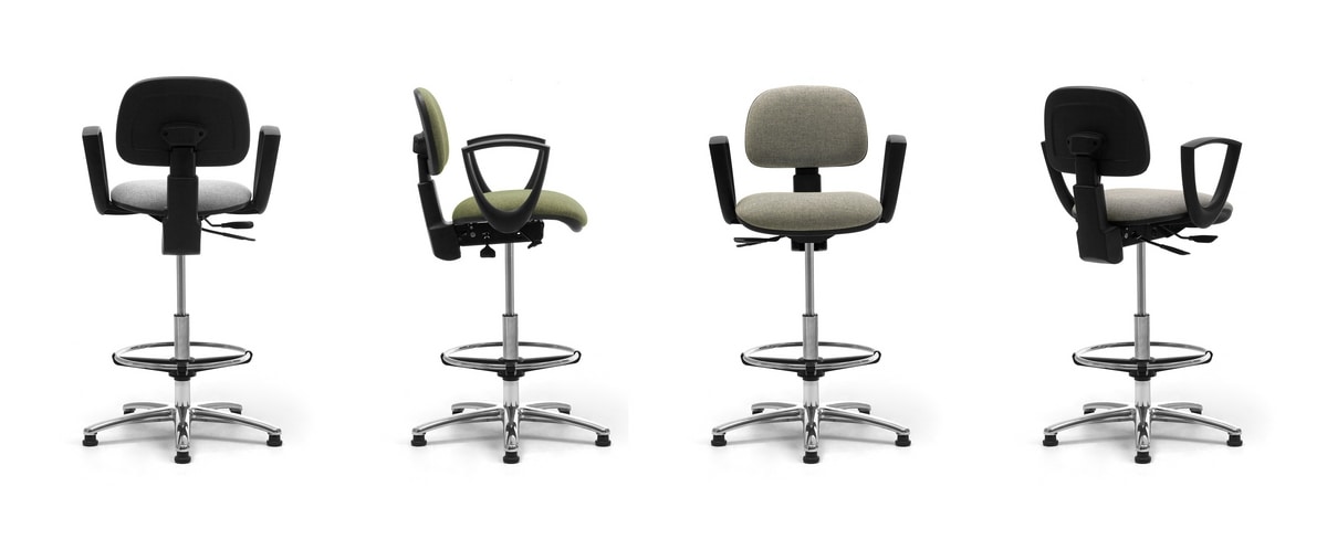 Saloon ist der funktionale Hochstuhl für anspruchsvolle Arbeitsumgebungen. Konzipiert als professioneller Kassenstuhl oder Werkstattstuhl, bietet er optimale Unterstützung an Steh-Sitz-Arbeitsplätzen wie im Einzelhandel, in der Industrie oder in Laboren.