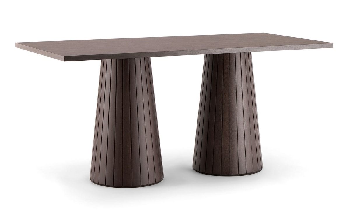 Rechteckiger Tisch mit doppelter konischer Basis