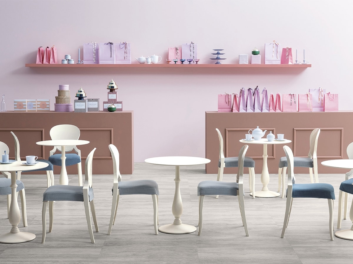 Stellen Sie sich einen Raum vor, in dem die dekorative Anmut des Jugendstils nahtlos mit der Robustheit von sandgestrahltem und lackiertem Gusseisen in edlen Farbtönen verschmilzt. Die Liberty-Basis ist mehr als nur eine Einrichtung; Es ist ein Ausdruck der Klasse in den anspruchsvollsten Lokalen wie Konditoreien, Restaurants und renommierten Bars.