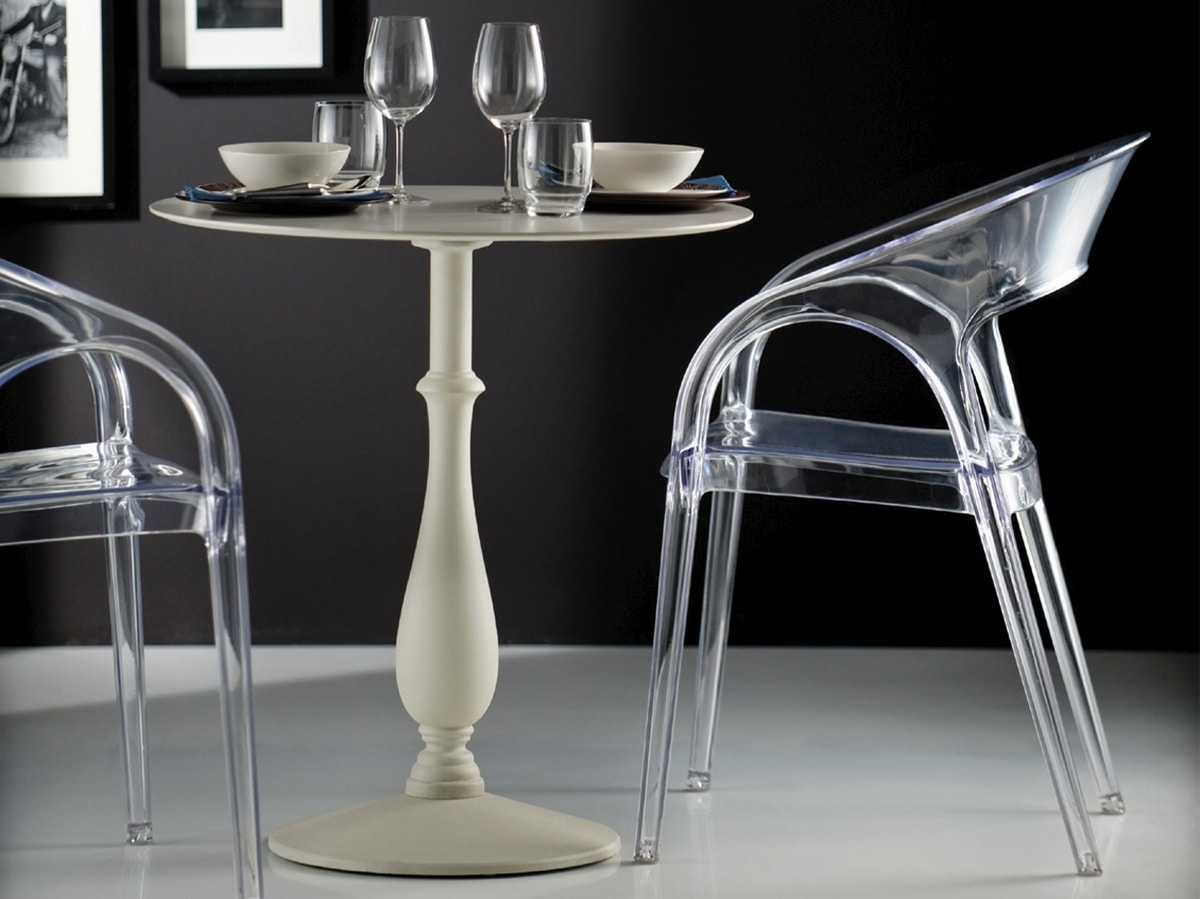 Seine Vielseitigkeit kommt in Kombination mit einer Tischplatte zum Ausdruck und ergibt einen Tisch mit königlicher Präsenz und einem maximalen Durchmesser von Ø 85 - 60 x 60. Dieses funktionale Kunstwerk kann seine Eleganz sowohl draußen, unter freiem Himmel als auch drinnen ausstrahlen. Bereichert Räume mit seiner unverwechselbaren Note.