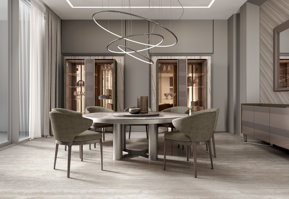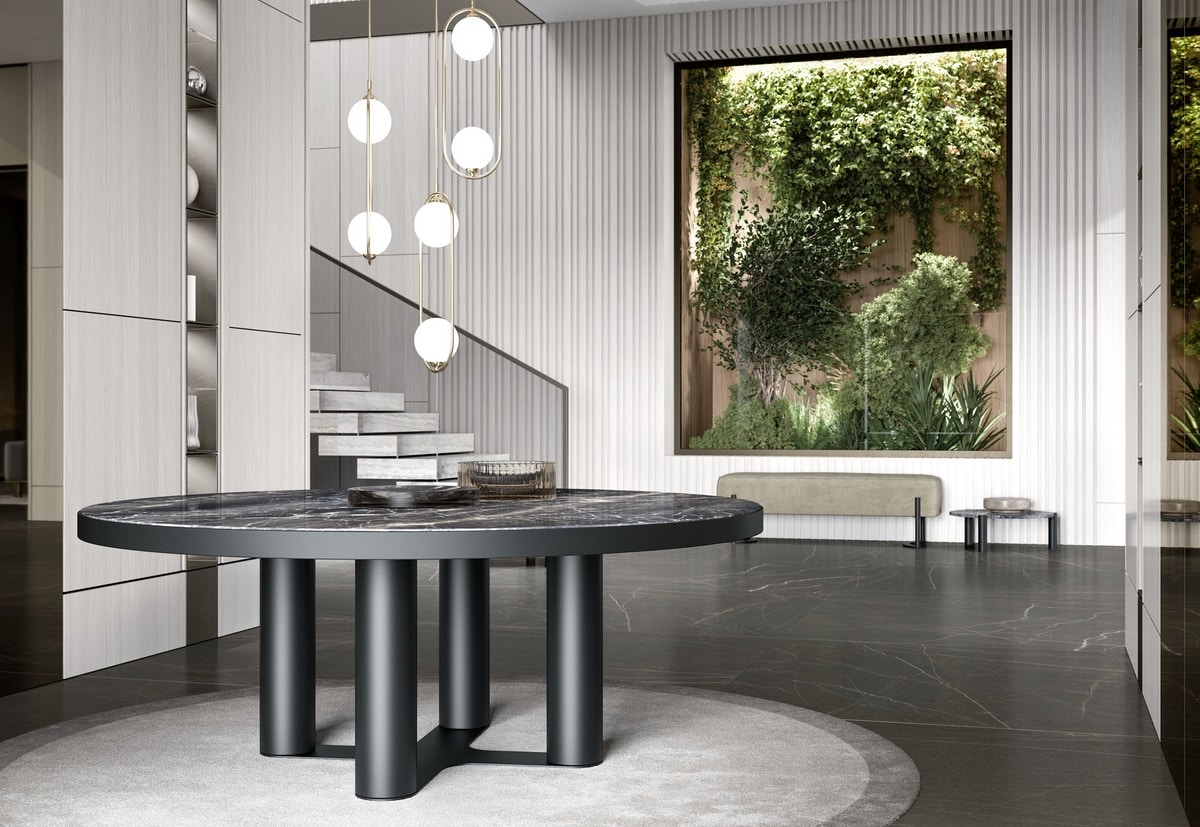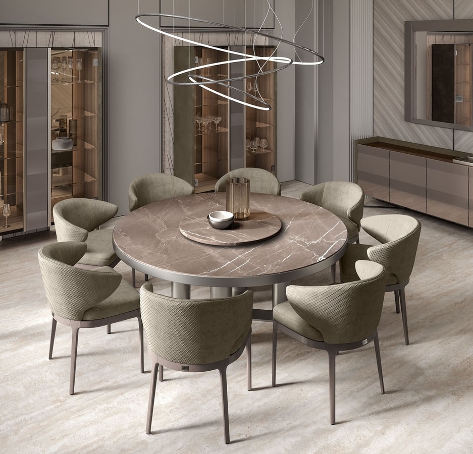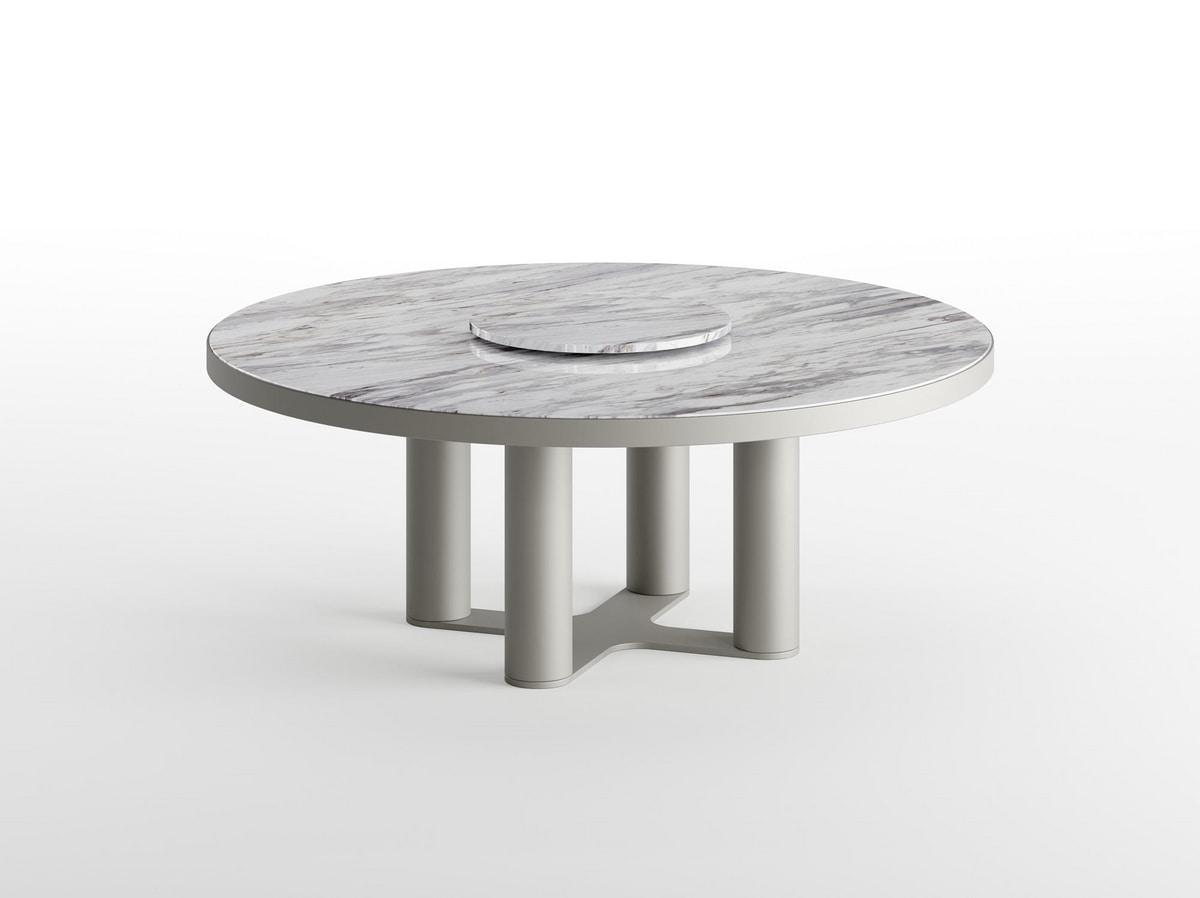 Preise anfordern Ähnliche ProdukteMetallbeine heben den runden Tisch Tubes hervor, der mit einer Marmor- oder Holzplatte erhältlich ist, deren Kante an die Basis erinnert. Die Lazy Susan ist optional.