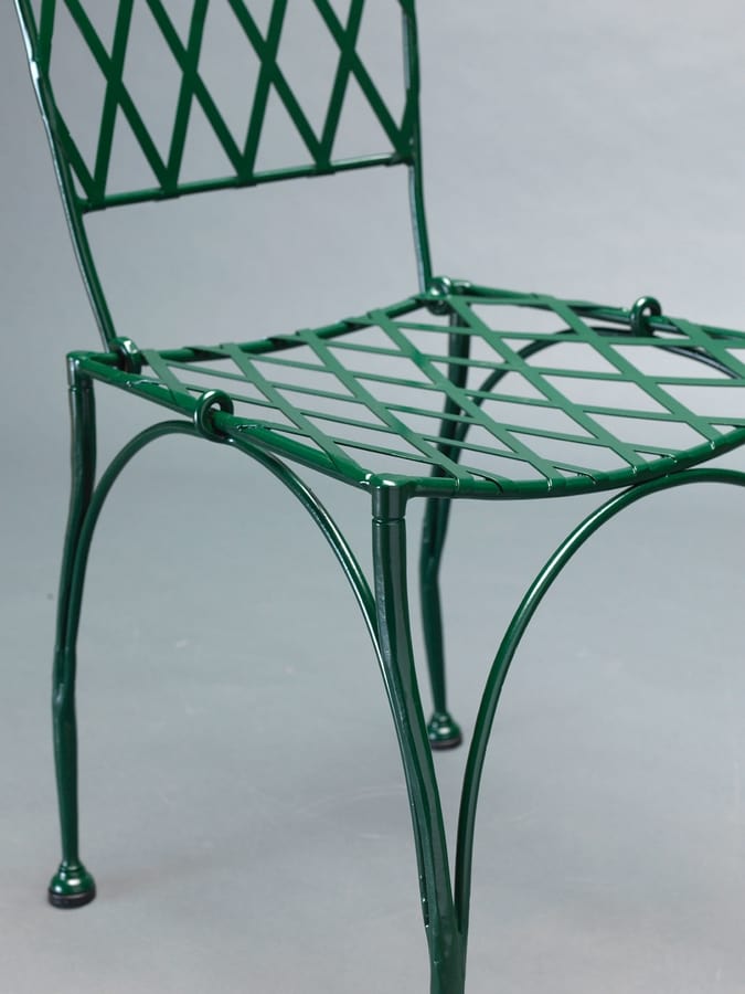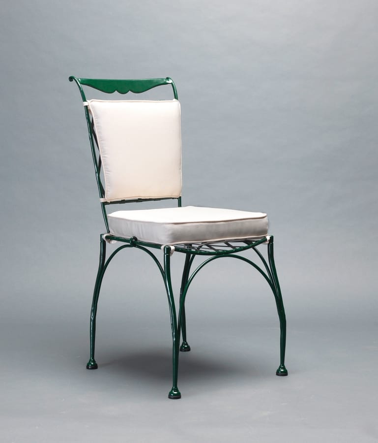 Edelstahlstuhl ohne Armlehne und Outdoor-Kissen, pulverbeschichtet.
