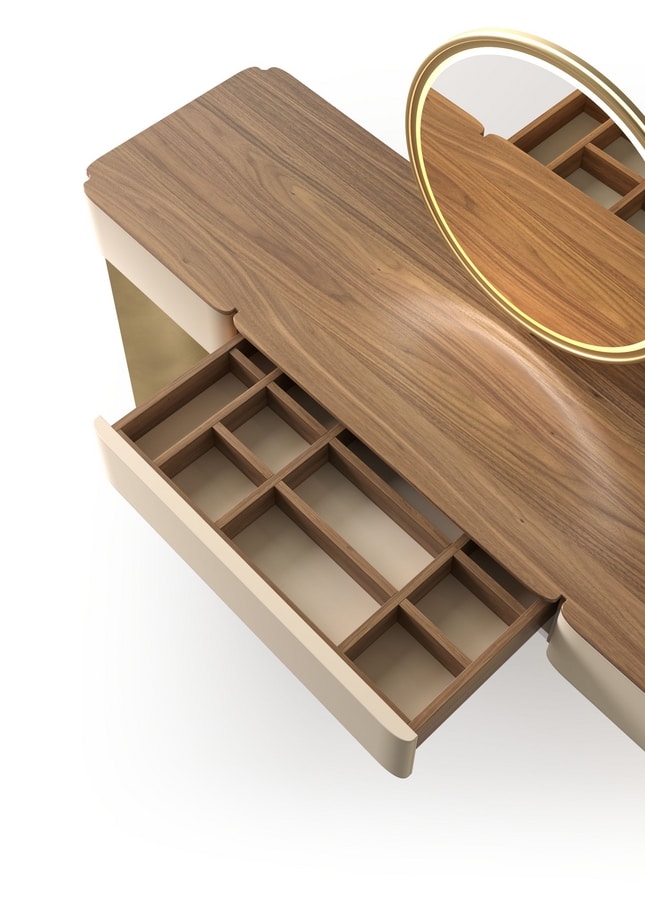 Preise anfordern Ähnliche ProdukteDie Glamis Vanity Console kombiniert ein minimalistisches Design mit raffinierten Materialien mit einem Oberteil aus Holz oder Naturstein und einer nahtlos integrierten Schublade. Der Spiegel, gepaart mit weicher Beleuchtung, erzeugt die perfekte Kulisse für tägliche Schönheitsroutinen.