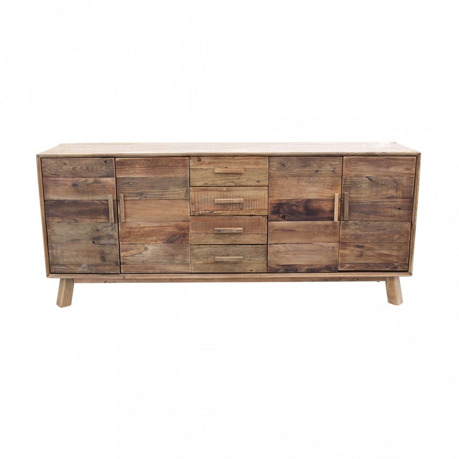 Anrichte aus recyceltem altem Kiefernholz mit 4 Türen und 4 Schubladen.