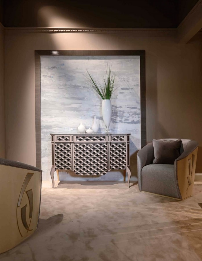 Sideboard mit Schachbrett-Inlay