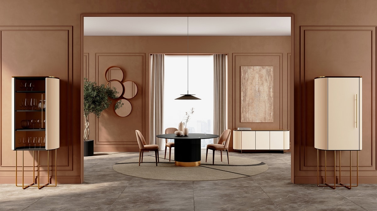 Moderner Schrank aus lackiertem Holz und poliertem Messing