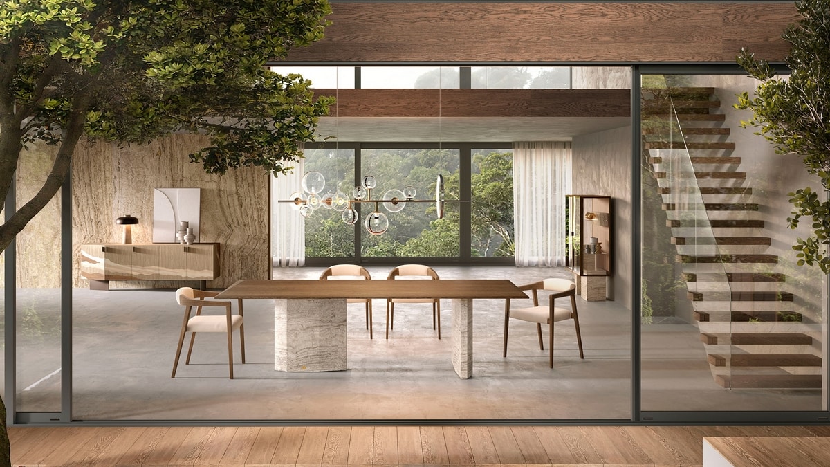 Vom Wohnzimmer bis zum Esszimmer und im Schlafzimmer interpretiert Materica das Haus mit einem Stil, der sich von der Natur und den Emotionen inspirieren lässt, mit dem Ziel, nicht nur die intrinsische Schönheit der Materialien, sondern auch die Gefühle des Wohlbefindens zu verbessern, die sie in Wohnräumen erwachen können.