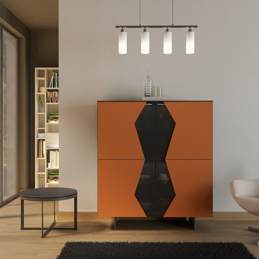 Schrank mit geformten Glaseinsätzen mit einem geometrischen Design