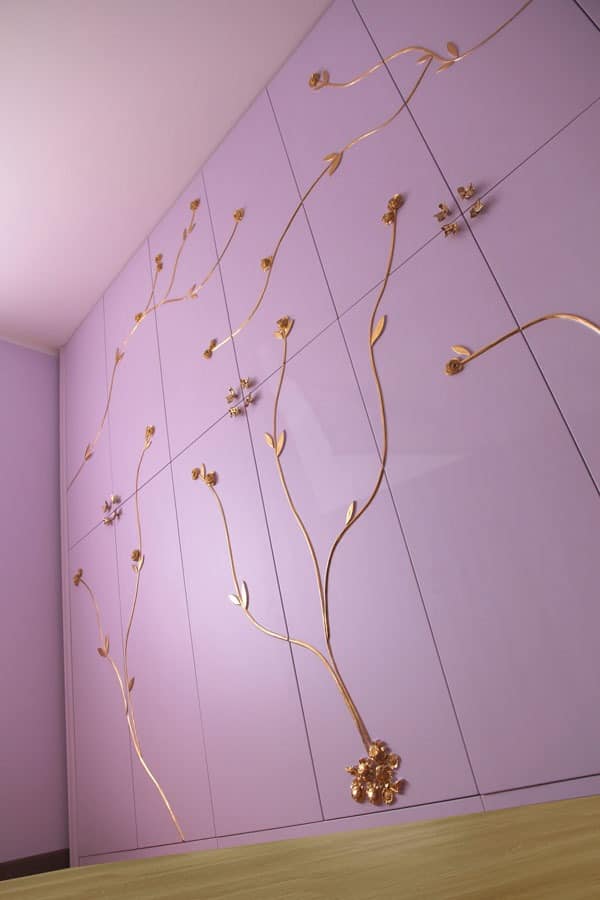 Maßgeschneiderte Kleiderschrank, in den kundenspezifischen Größen, Ausführungen und Dekorationen: Finish in der Abbildung: lila und Blattgold.