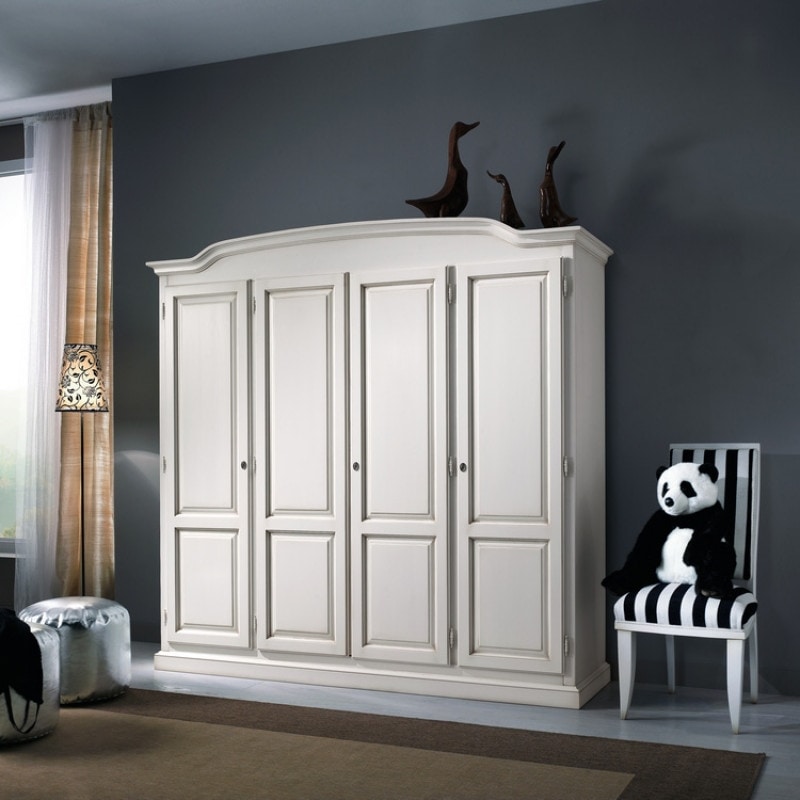Preise anfordern Ähnliche ProdukteKlassischer viertüriger Kleiderschrank mit traditioneller und leichter Optik. Dieser klassische Kleiderschrank hat einen Korpus, der in drei Fächer unterteilt ist, mit Türen aus Quaderstein. Einzelfächer an den Seiten, ein Fach mit Doppeltür in der Mitte. Geformter und gerahmter Hut mit geformten Profilen, linearer Sockel, bereichert durch geformte Rahmen. Das helle Erscheinungsbild dieses Kleiderschranks macht ihn perfekt für ein traditionelles und elegantes Zuhause.