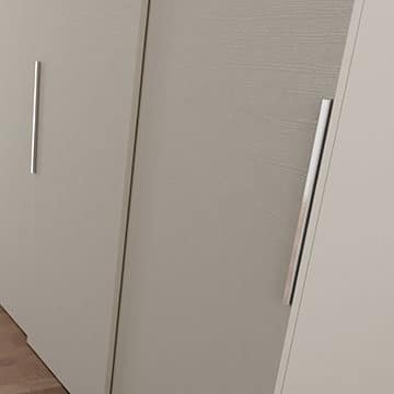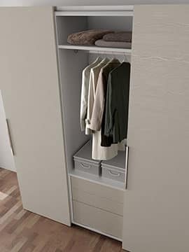 Kleiderschrank mit 3 Schiebetüren und Innenschubladen, mit Schubladen "Push-Pull" zu öffnen und zu handhaben 'Stift plus' Chrom.