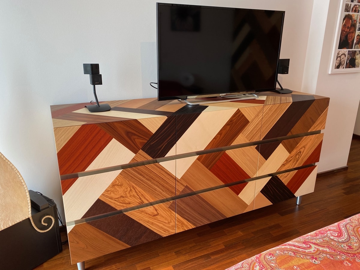 Kommode in einem einzigartigen Stil, mit edlen Hölzern