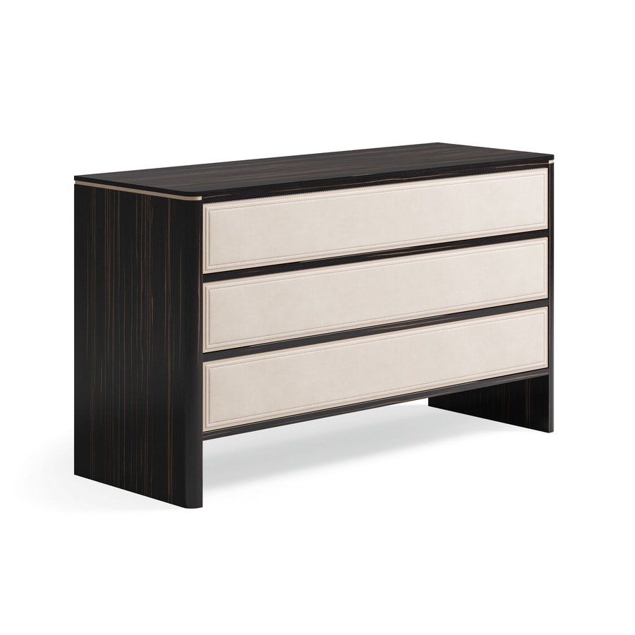 Kommode mit Fronten mit Leder oder Stoff bedeckt